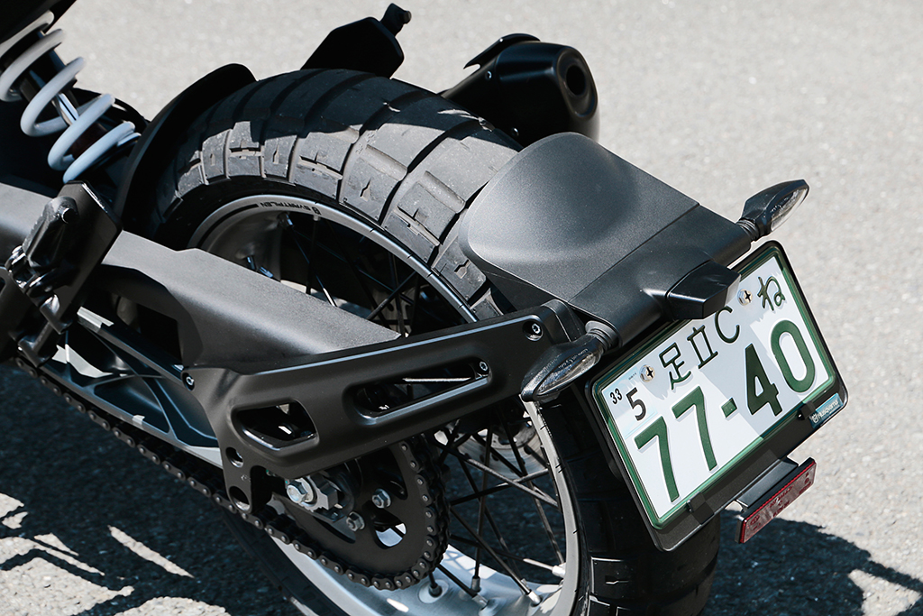 スヴァルトピレンは、デフォルトとして専用のタンクバッグを取り付けられるようになっているので、平板なリアシートと併せ、ほどほどの搭載性を期待できます。