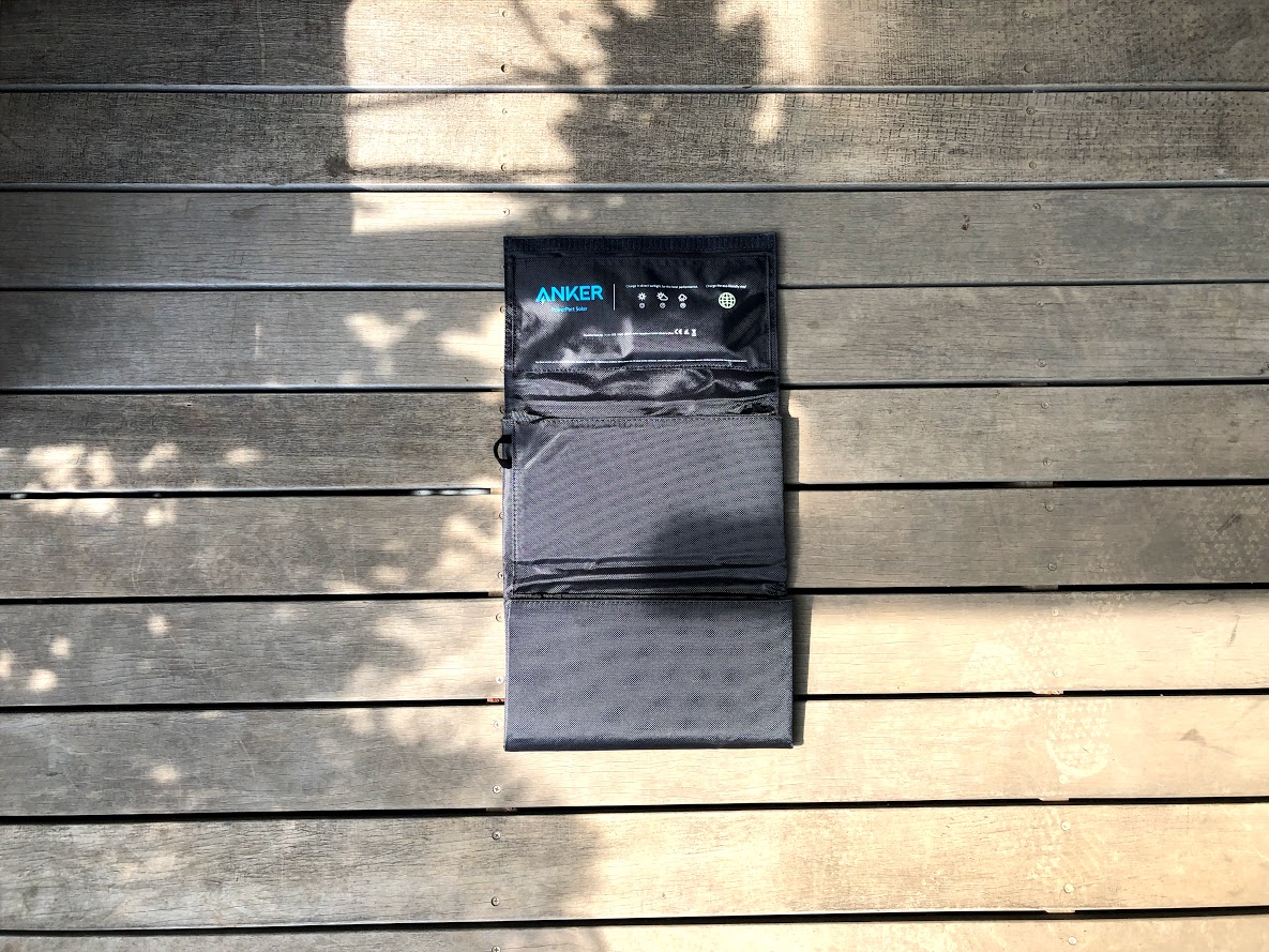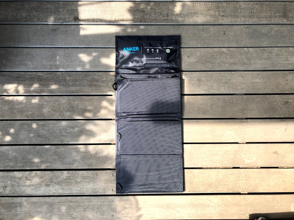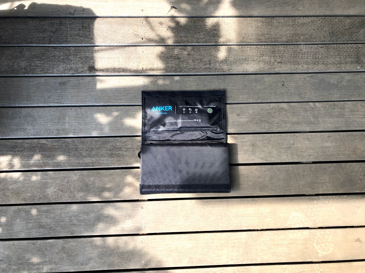 パネルを覆うファブリックはバリスティックナイロンなので、まさにアウトドアでガンガン使っても問題なさそう。多少の汚れや水気は弾いてくれます。さすがに端子部分は濡れたらアウトでしょうけど。