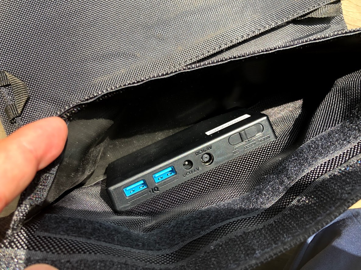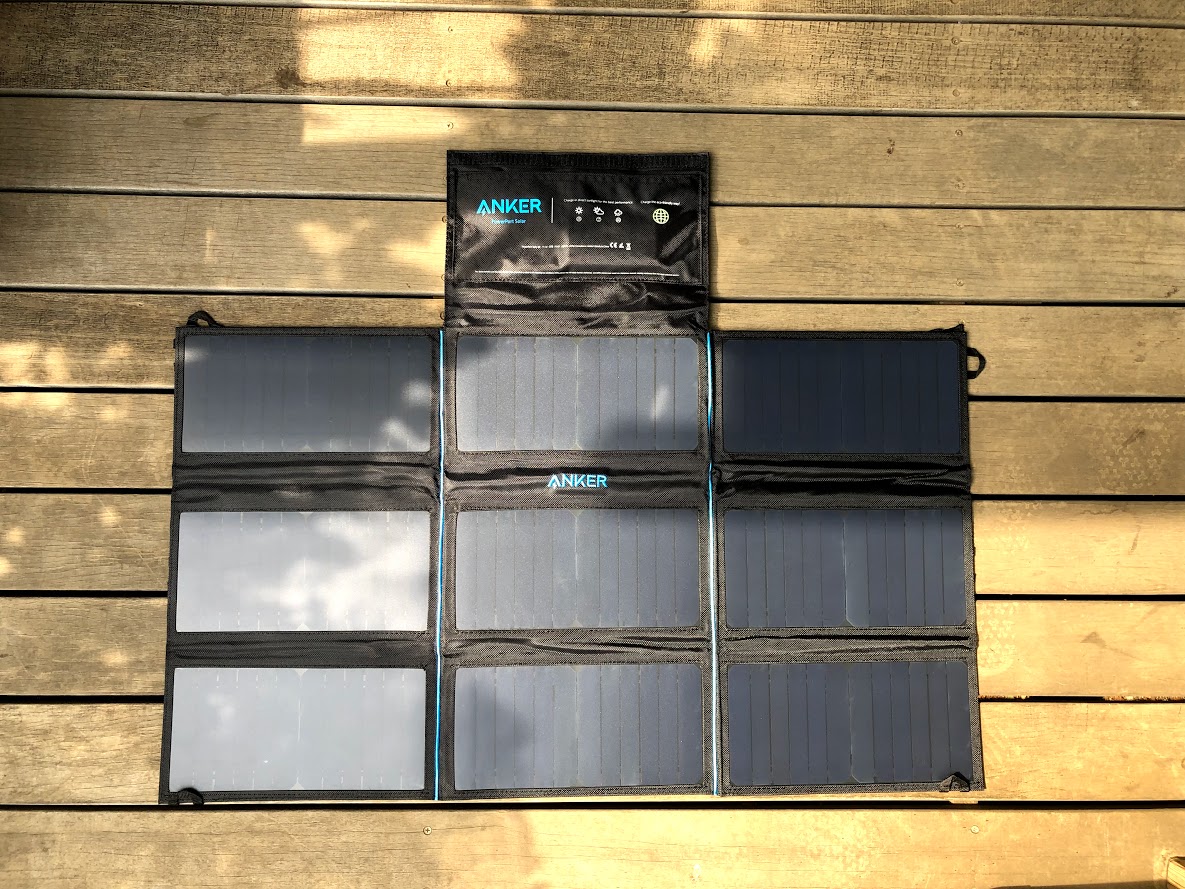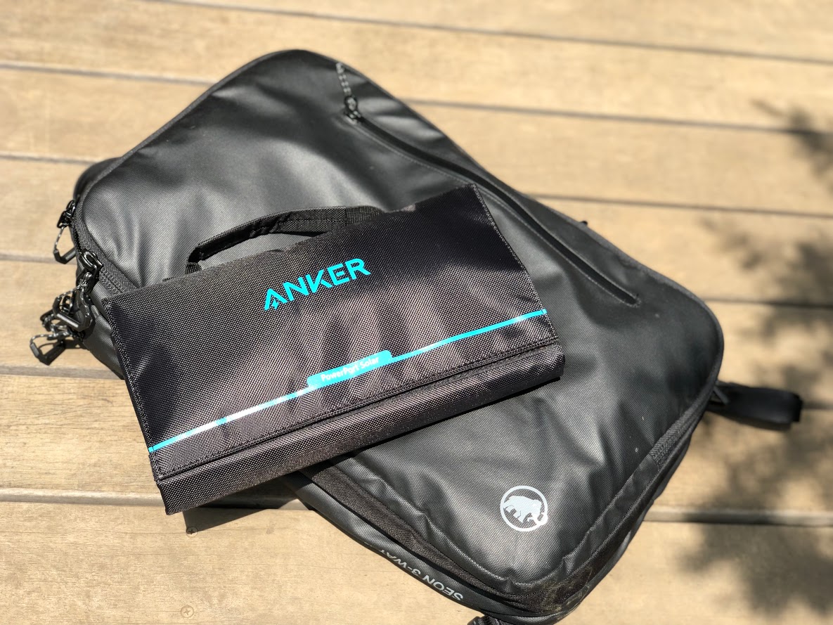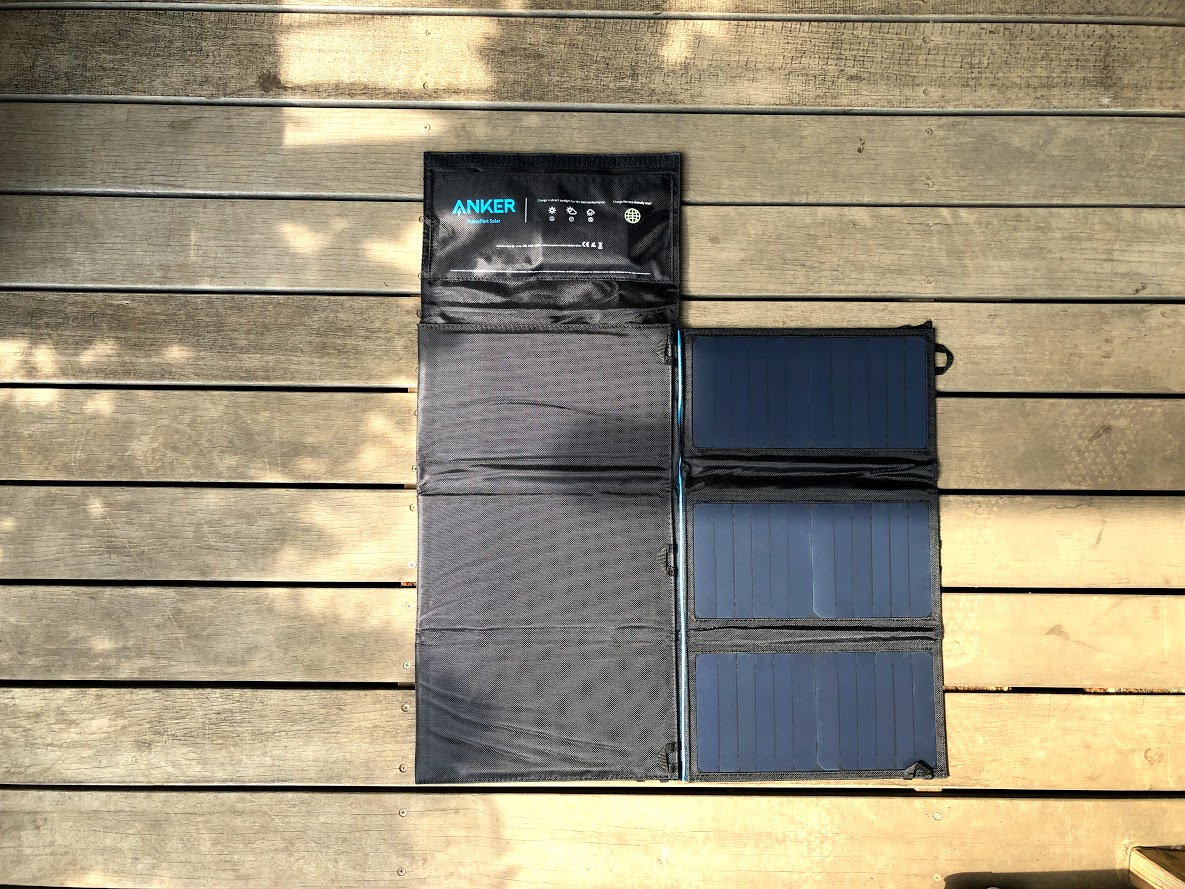 パネルを覆うファブリックはバリスティックナイロンなので、まさにアウトドアでガンガン使っても問題なさそう。多少の汚れや水気は弾いてくれます。さすがに端子部分は濡れたらアウトでしょうけど。