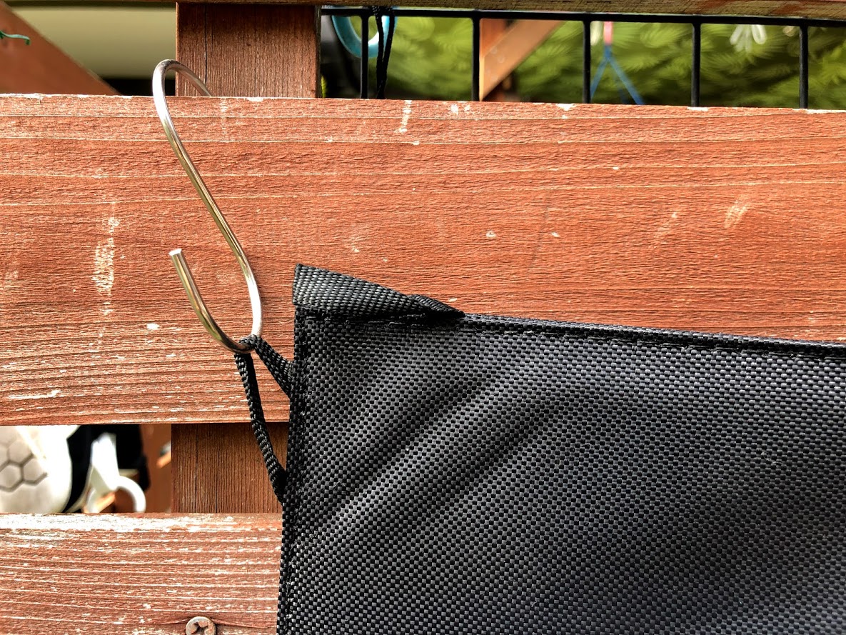 さて、“光はいっぱい当てましょう”ということ意外にも、細部を見ると他にも気になるポイントがあります。それがパネルの端っこについているループです。これを駆使すれば、日当たりのいい場所に引っ掛けて使えるというわけ。