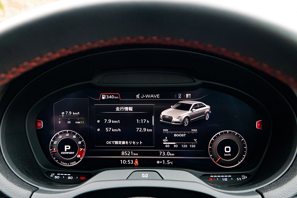 “アウディドライブセレクト”により、走行モードを「オート」、燃費重視の「エフィシエンシー」、走り重視の「ダイナミック」、そして、各機能を任意のモードに設定できる「インディビジュアル」という4つの中から選べるが、今回は「ダイナミック」モードにして走り出す。すると、まずは音の演出によってドライバーを魅了してくる。