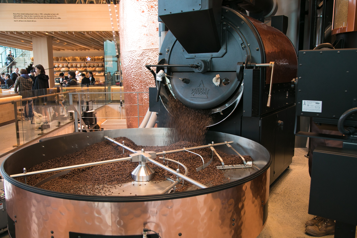 桜の名所として知られる目黒川沿いに今年2月オープンし話題となっているロースタリーは、世界で5店舗目となる焙煎まで行う特別な店舗だ。ここには、スターバックスが掲げる“コーヒー文化を五感で楽しむ”工夫が随所に施されている。