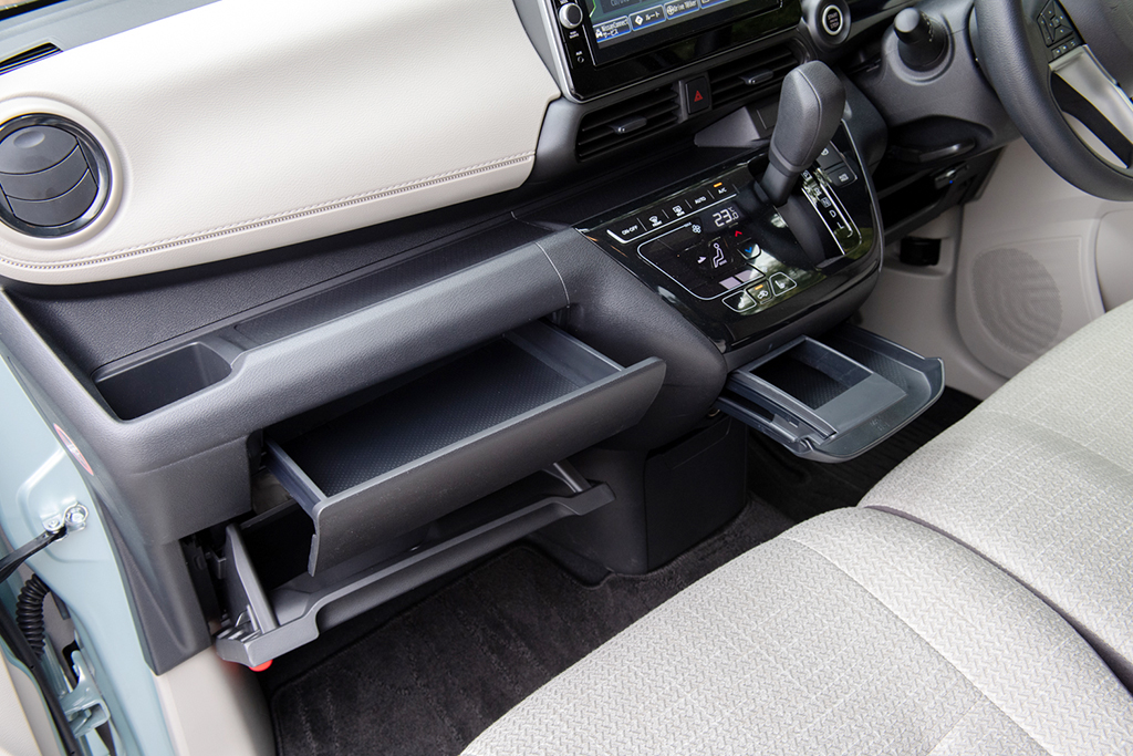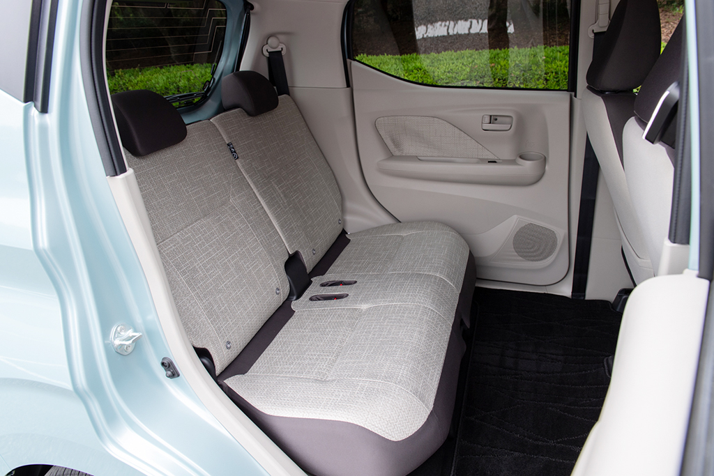 デザインや、ディテールのコーディネートの巧みさを感じさせるのは、インテリアも然り。インパネやシートの形状はekクロスと共通ですが、ダッシュボード上部やドアパネル、シート表皮を明るい色とすることで、インテリア全体がカジュアルでソフトな印象に仕上げられています。