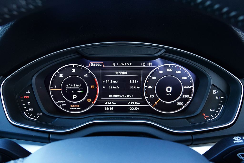 そして、Q5ディーゼルの最大のメリットは、やはり経済性の良さだ。燃費データは、カタログスペック上のJC08モードで、ガソリン車45 TFSIクワトロの13.9km/Lに対し、ディーゼルの40 TDIクワトロは15.6km/Lと、大差ないように見える。しかし、ディーゼル車は低回転域のトルクが太く、エンジン回転をあまり上げないでも力強く走るといったエンジン特性の違いもあって、実際の燃費データはさらに差が大きくなる。その上、燃料となる軽油は、ハイオクガソリンと比べて2割以上安いということも珍しくないため、ランニングコストは大きな差となるのだ。