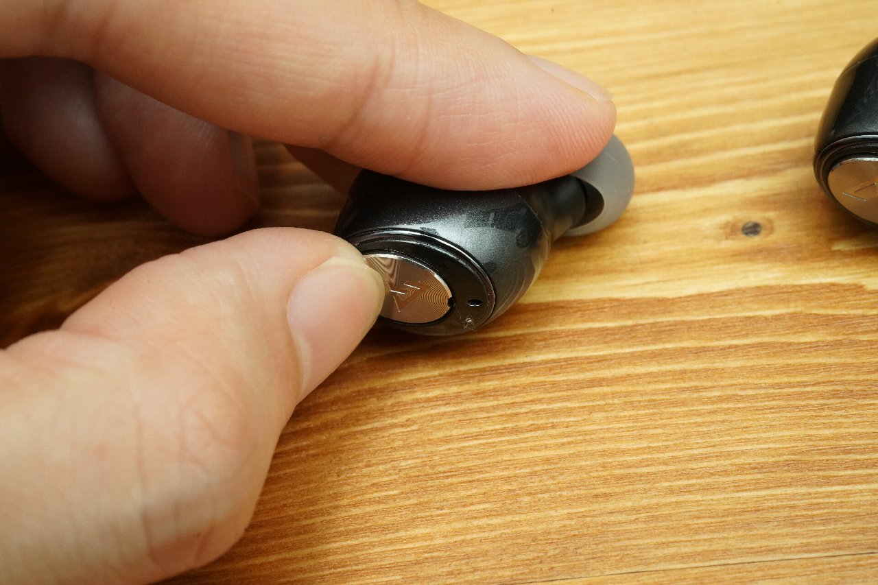 操作性は、左右どちらでも1回押しで再生/停止、右側を2/3回押しで曲送り/戻し、左側を2回/3回押しで音量下げ/音量上げ対応。格安モデルで省かれがちな音量操作まで対応しているので全くスキなしです。