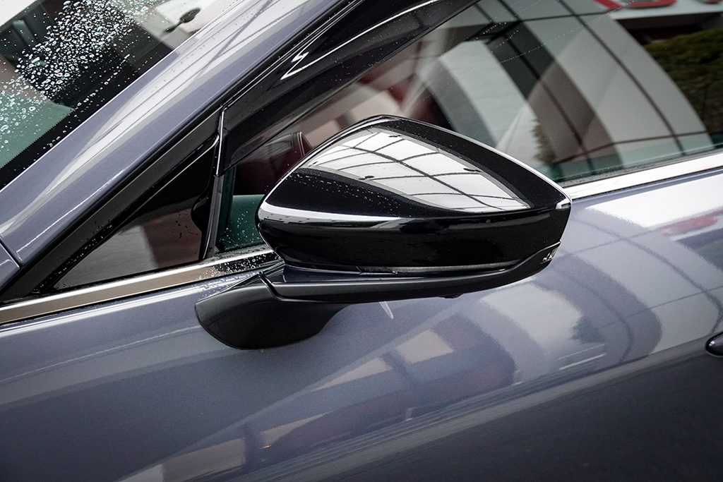 例えばエクステリアパーツは、フロントアンダースカートを始めとするエアロパーツ類をグロスブラック仕上げに。ポリメタルグレーメタリックやソウルレッドクリスタルメタリック、マシーングレープレミアムメタリックといった印象的なファストバックのボディカラーに対し、あえて目立たないカラーコーディネートにしている。それでいて、車体下部にボリュームを持たせることでスタイリングを引き締め、ノーマルとは異なる雰囲気に仕立てているのだ。