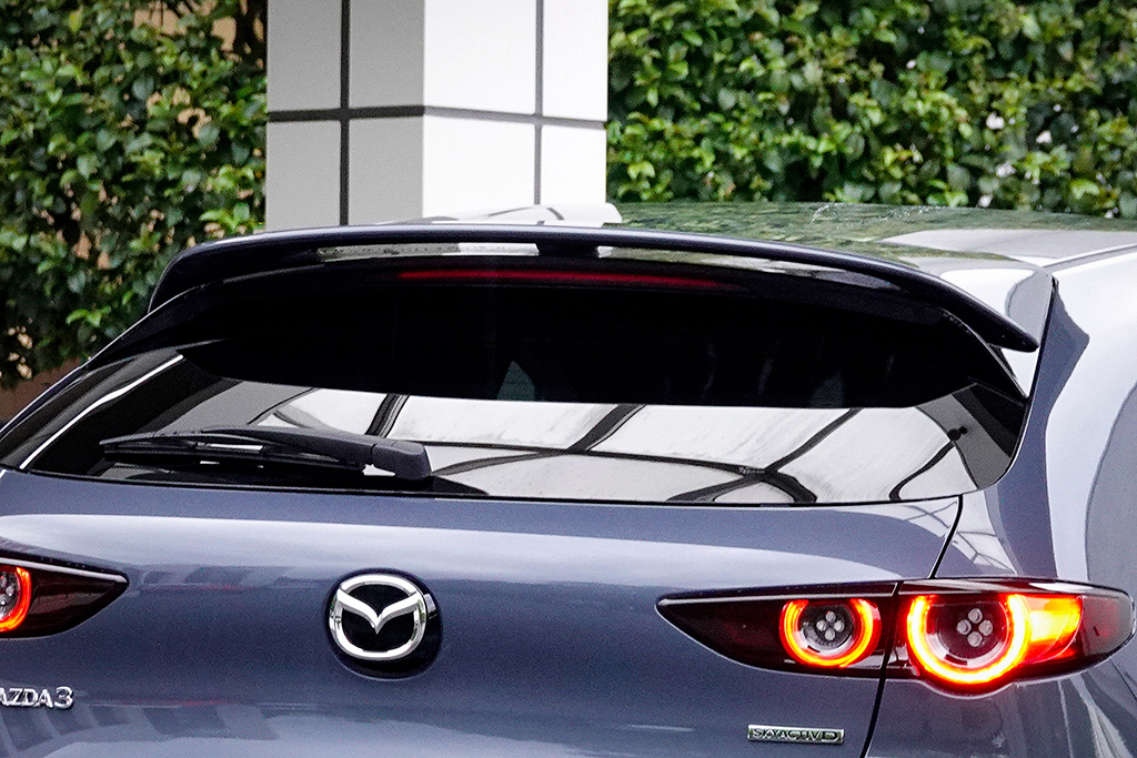 新型マツダ3のルックスは、特徴的なリアピラーを始め、全身に個性が満ちあふれているため、そのバランスを崩すことなくドレスアップすることは、とても難しい。従来までのルックスであれば、アクセサリー類を装着してひときわ個性を強める、という手法も採れただろうが、新型マツダ3では、標準仕様のスタイルと調和させるという手法を選んだ。