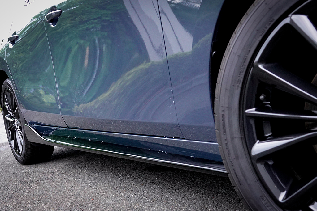 その上で驚かされるのが、シグネチャースタイルの価格設定。エアロパーツ類は、フロントアンダースカート+リアルーフスポイラー、サイドアンダースカート、リアアンダースカートそれぞれを単体で装着可能だが、それらにBBS社製の鍛造アルミホイールをプラスすると、合計金額は71万9936円に達する。中でも、BBS社製のアルミホイールは、1台分で41万4436円と高価なのだ! でもシグネチャースタイルは、それらをパッケージしながら、アンダー50万円のプライスタグを実現。そこには、「エアロパーツだけでなくアルミホイールもセットし、マツダ3のトータルコーディネートを楽しんで欲しい」というマツダの思いが息づいている。