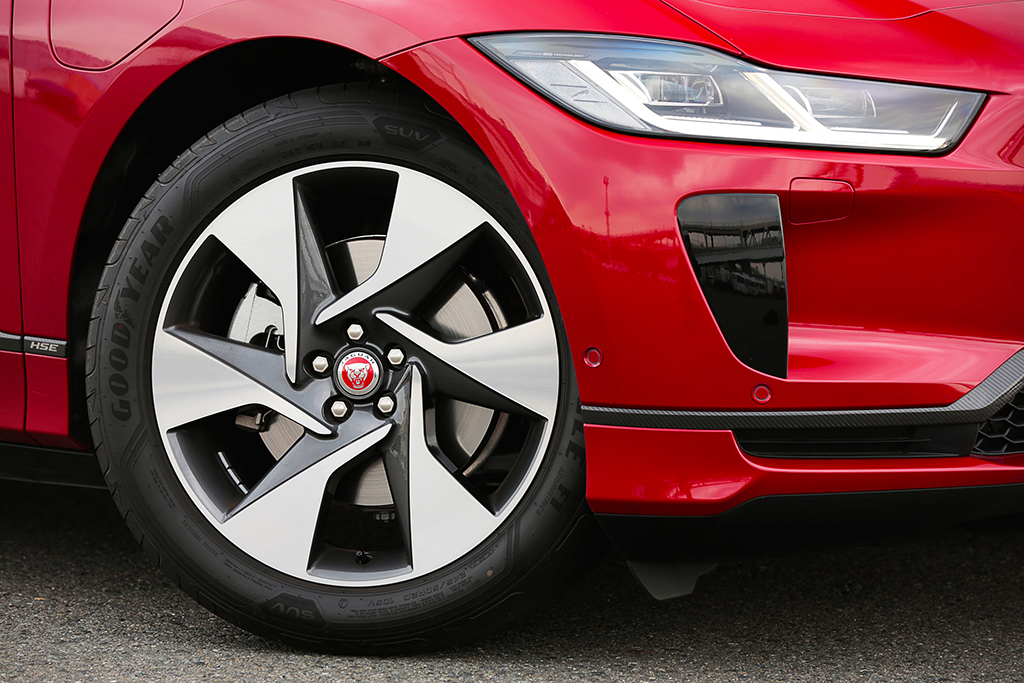 I-PACEは実に軽快だ。重いバッテリーを大量に搭載するため、絶対的な車両重量は2230kg(エアサスペンション仕様は2240kg)に達する。にもかかわらず、軽快とはどういうこと!? と思われるかもしれないが、重いけれど、重心が低いのだ。例えば、F-PACEと比べると130mmも低い。加えて、50対50と理想的な前後重量配分となっている。