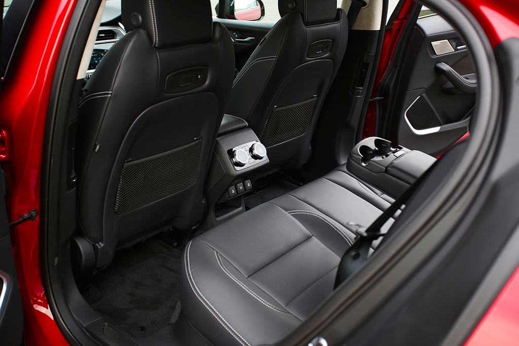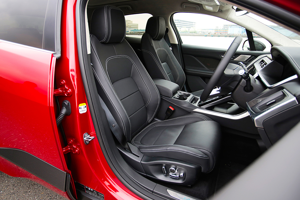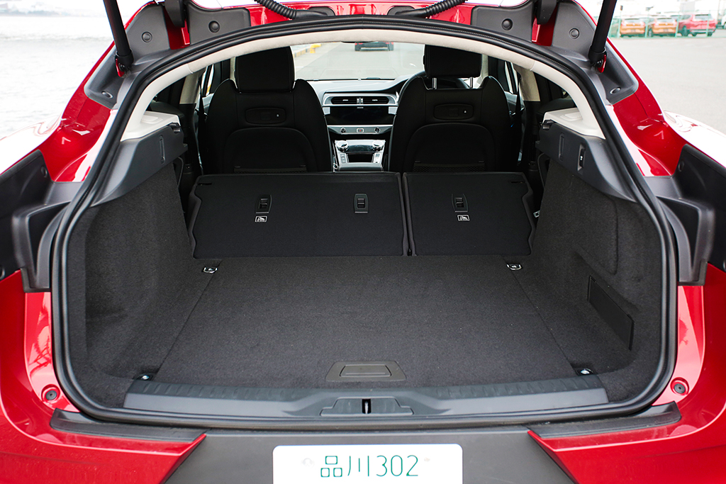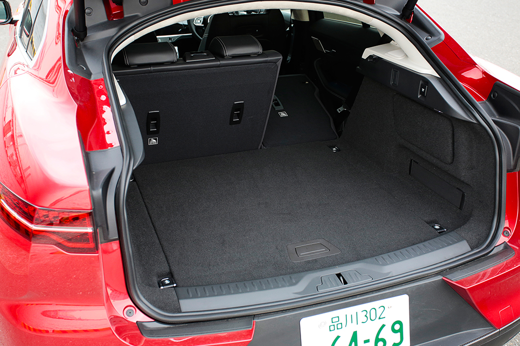 “PACE”の名が付いていることから分かる通り、このクルマは「E-PACE(イー・ペイス)」やF-PACEと同様に、ジャガーSUVの一員なのだ。とはいっても「全高が高いのはバッテリーを搭載するためであって、室内の広さ、高さはそれなりだろう」と高をくくっていたが、乗り込んだら広くて驚いた。考えてみれば、バッテリーはあるものの、巨大なエンジンもトランスミッションもない。プロペラシャフトもないからフロアはフラットだ。