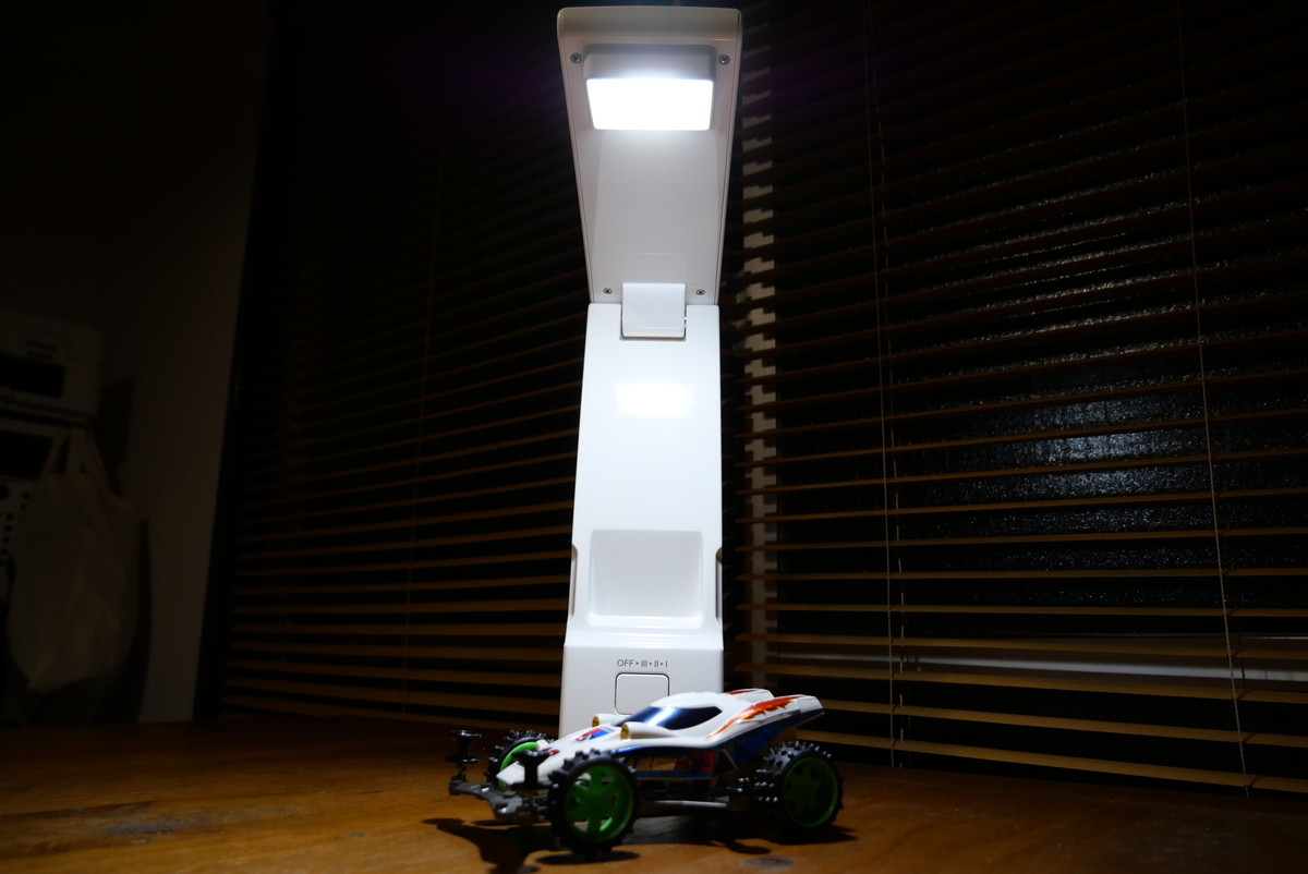 これでもなんとかなりそうですが、細かいパーツや、デカールやシールをシートから剥がす時にはちょっとしんどいかも。組み立ては中でやって、細かい作業の時だけ強にするなんて使い方もありかもしれません。
