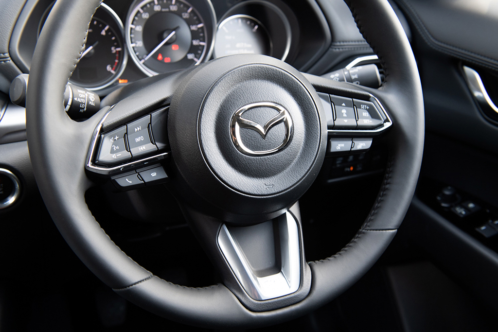 装備面におけるAT車との違いは、AT車誤発進抑制機能が備わらないことと、SBS(スマート・ブレーキ・サポート)&MRCC(マツダ・レーダー・クルーズ・コントロール)に全車速追従機能が備わらないこと。それらを除けば、基本的に共通です。搭載されるエンジンは、排気量2188ccの直列4気筒直噴ディーゼルターボで、190馬力の最高出力、45.9kgf-mの最大トルクもAT車と変わりません。もちろん、商品改良によって進化をとげた独自機構“GVC(G-ベクタリングコントロール)プラス”も搭載されています。