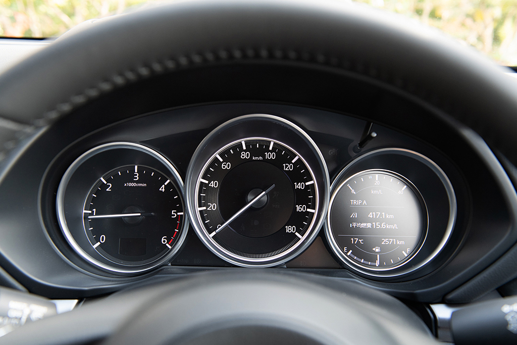 こうしたスカイアクティブ-D 2.2+6速MT車において、何よりありがたいのはその燃費。市街地と高速道路をほぼ半分ずつ、燃費を意識せず500kmほど走ったトータルの燃費データは、17km/L少々といったところ。WLTCの市街地モードでは、AT車が13.9km/L、MT車は16.9km/L、高速道路モードでは、AT車が19.6km/L、MT車は20.9km/Lですから、ほぼ額面どおりといったところ。このクラスのSUVとしては、かなり良好な部類だと思います。