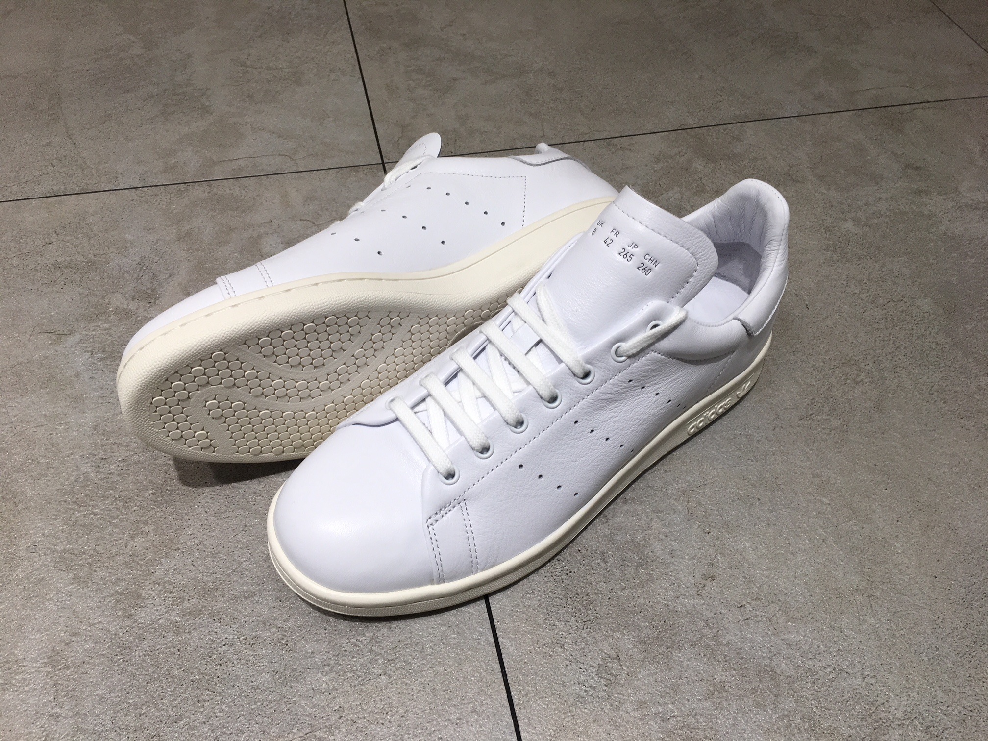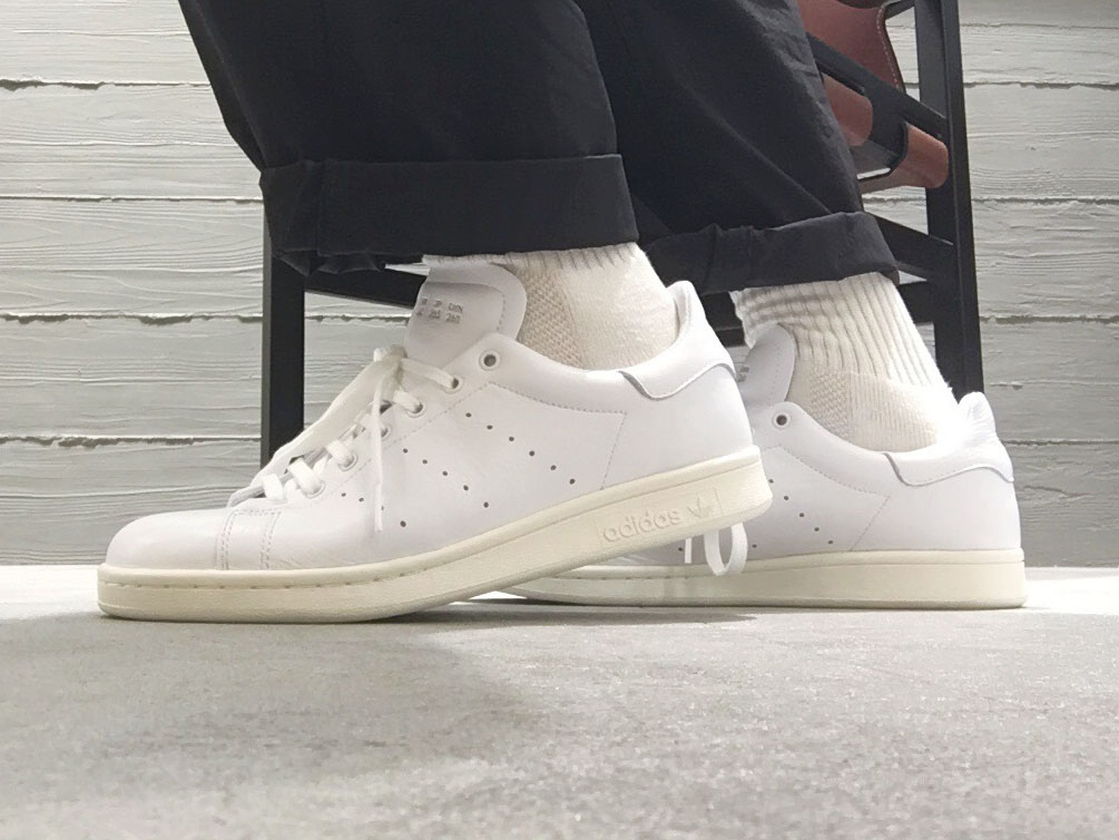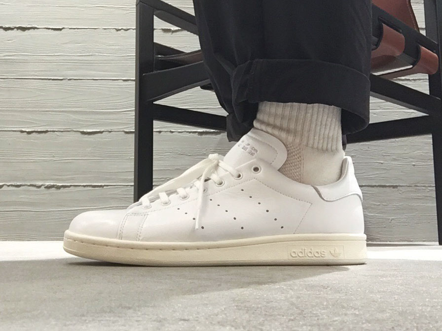 これまで経年変化を楽しむシューズといえば、エンジニアブーツやロガーブーツといったゴリゴリタフなワーク系ブーツでしたが、それが白スニーカーとは斬新! ダメージ=デメリットというのがスニーカーの一般的なセオリー。しかし本作では逆。ダメージ=メリットで、履き込むほどに加わる経年変化を楽しめるスニーカーなのです。少々大げさかもしれませんが、白スニーカーの楽しみ方&進化の可能性を大幅にアップさせた逸品といえるのではないでしょうか! ガンガン履いて、自分だけのスタンスミスを育ててみましょう!