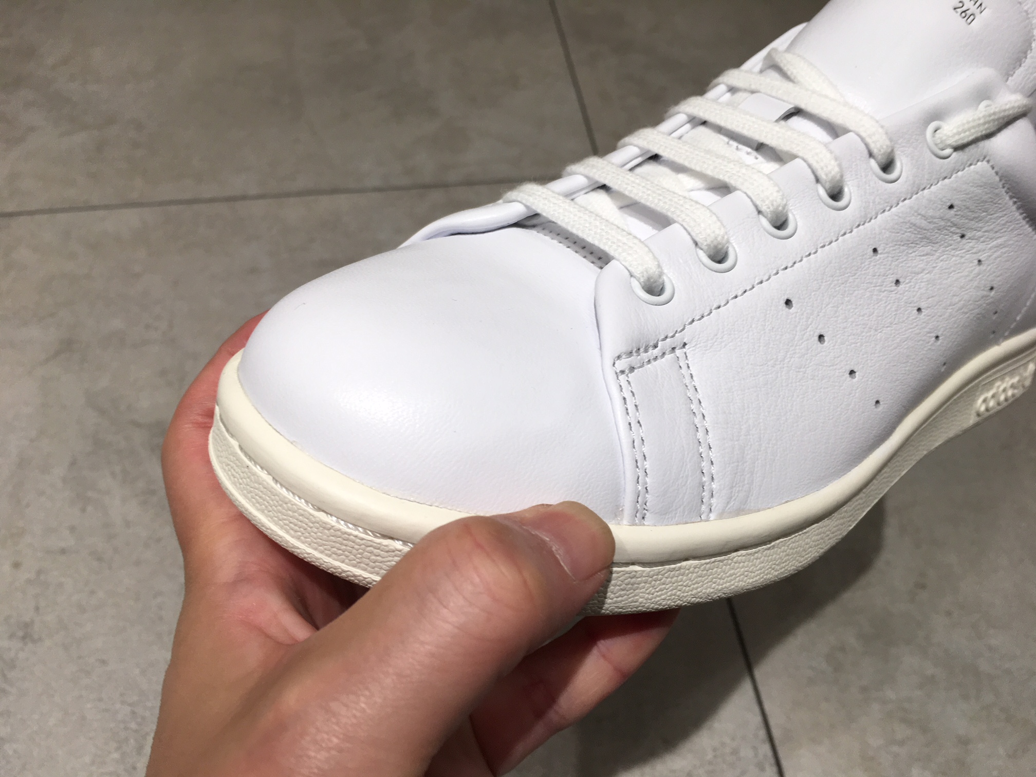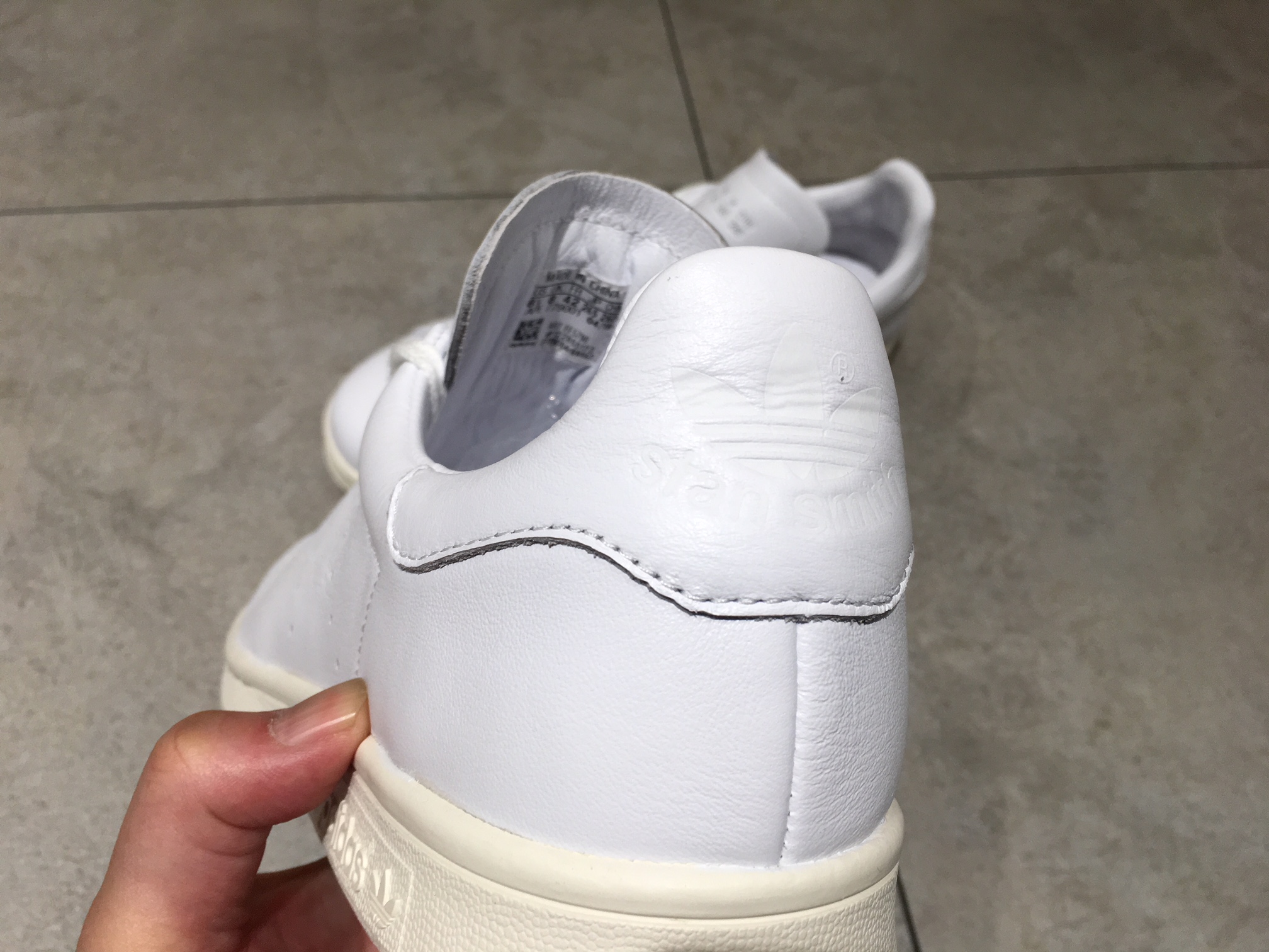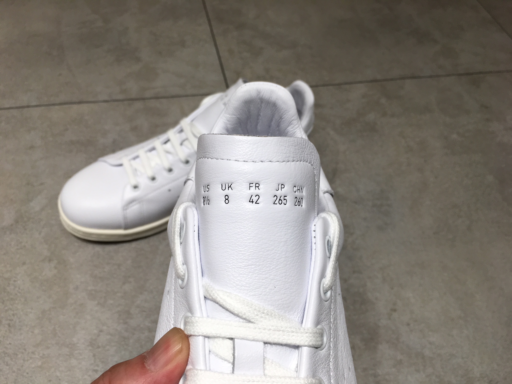 いつもならシュータンに伝説的テニスプレイヤー、スタン・スミス氏のイラストを用いたグリーンのラベルが配されていますが、本作では省かれて、ホワイトで統一。