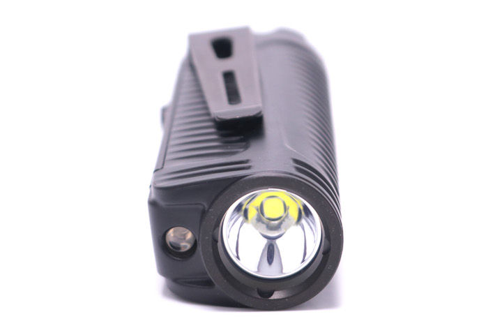 特徴的なボディは熱伝導と放熱に優れた一体鋳造のアルミダイキャスト。一時期に比べれば、「円筒形じゃないとタクティカルじゃない!」という雰囲気は落ち着いてきましたね。SUREFIREなどトップブランドも「らしくない」デザインを推進していることもあり、このようなカタチもだいぶ見慣れたのではと思います。