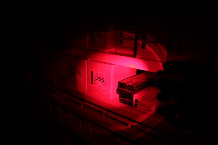 テールスイッチで操作するのは、右のメイン白色LED。XP-L HDを使用しており、メーカー公称で1800ルーメン。実際にそれくらい出ているように感じます。先述の通りリフレクタが深い。中心光、周辺光ともに狭い、タクティカルな配光が予想されます。