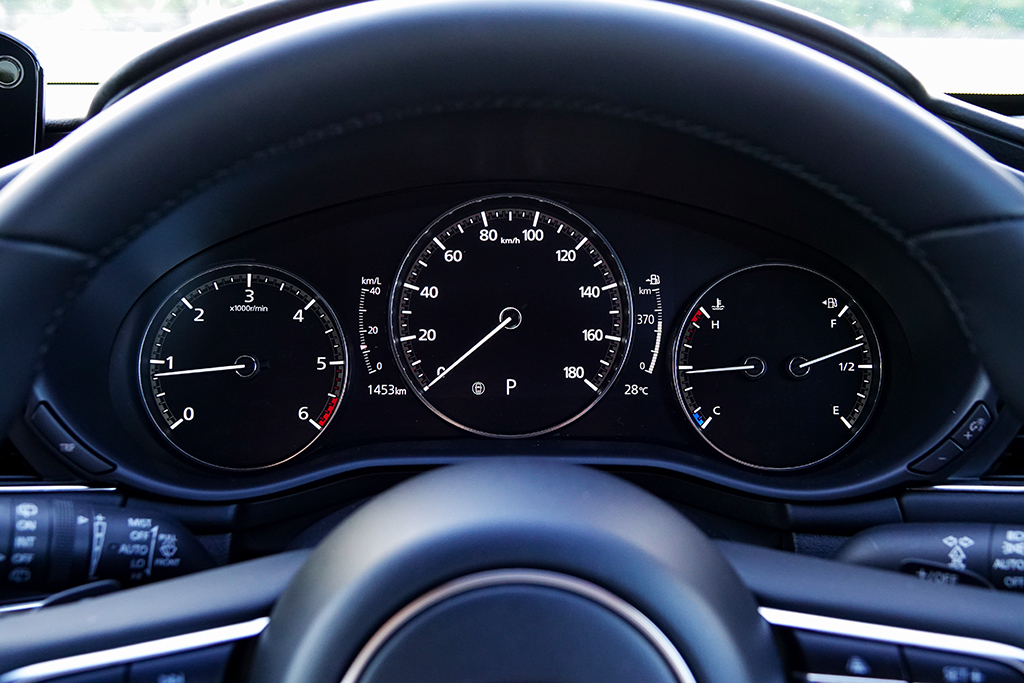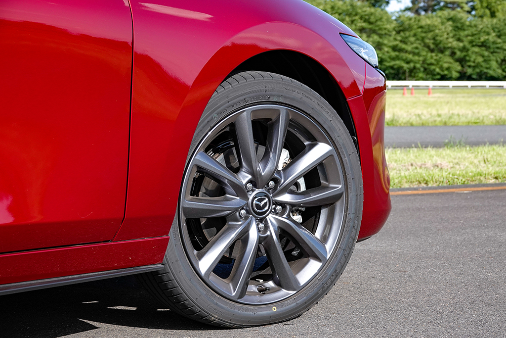 その点、マツダ3のブレーキは、急激に制動力が立ち上がるのではなく、ブレーキペダルを踏んだら踏んだ分だけ、ドライバーの操作に対してリニアに減速していく印象。初めてひと踏みした際には減速が足りないと感じたが、それは日本車にありがちな“リニアではないブレーキの感覚”に慣れ過ぎていたため。特性を把握して以降は、断然コントロールしやすいと感じるようになり、自然で違和感のない素晴らしいブレーキフィールを堪能できた。