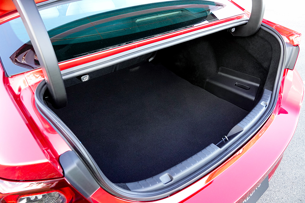その見た目から、「リアシートが狭苦しいのでは?」という印象を事前に抱いていたが、実際にリアシートに収まってみると、思いのほか狭くない。もちろん、太いリアピラーや小さなリアドア・ウインドウの影響で、閉塞感を感じるのは事実。ファミリーカーとして使うのであれば、それはウイークポイントになるかもしれない。とはいえ、ファストバックの美しいデザインにほれてしまったならば、十分目をつむれるレベルだと思う。