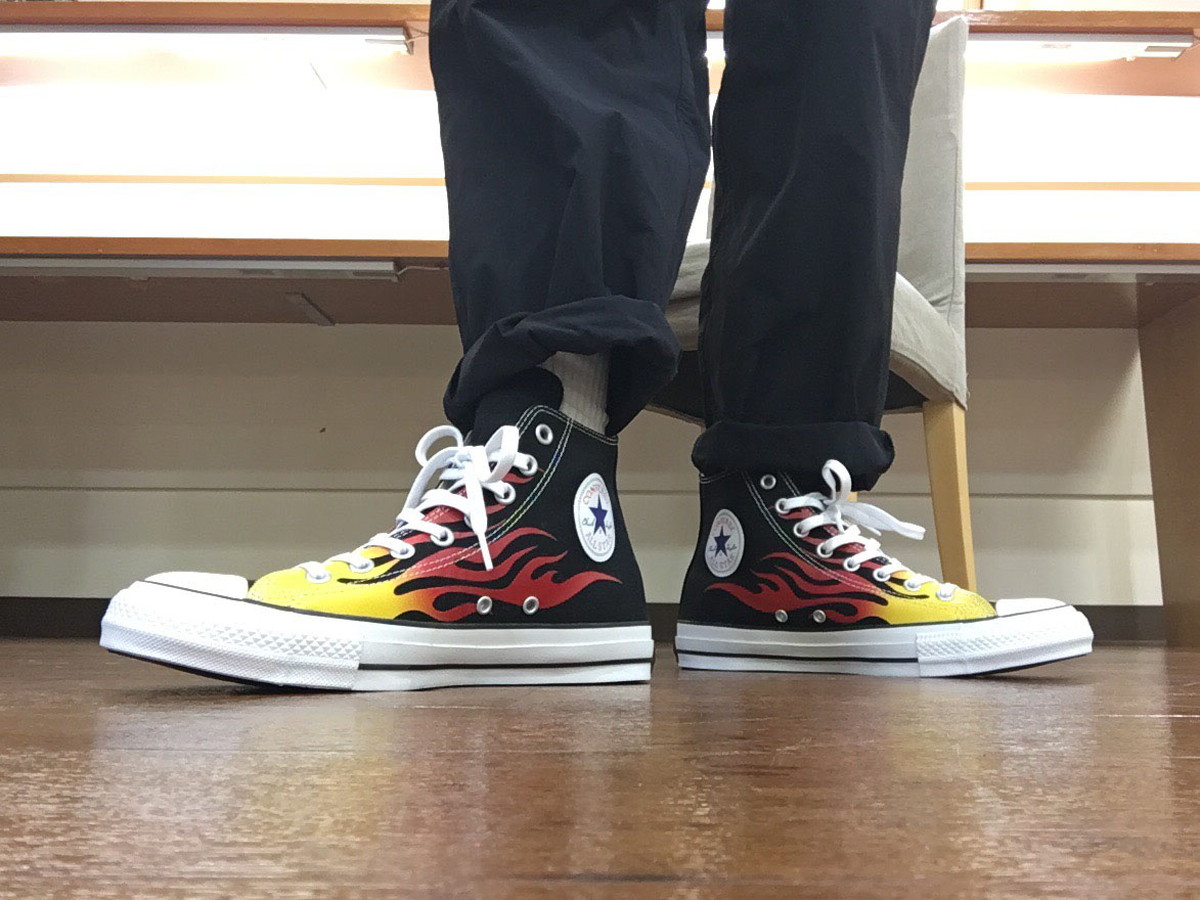 そんなオールスターの新作に、絶対に目が離せないスペシャルな一足が出て参りました。それが「オールスター 100 イグナイト HI」です! ブラックをベースにデカデカと描かれたフレイムパターンが、イカツカッコイイですね~。