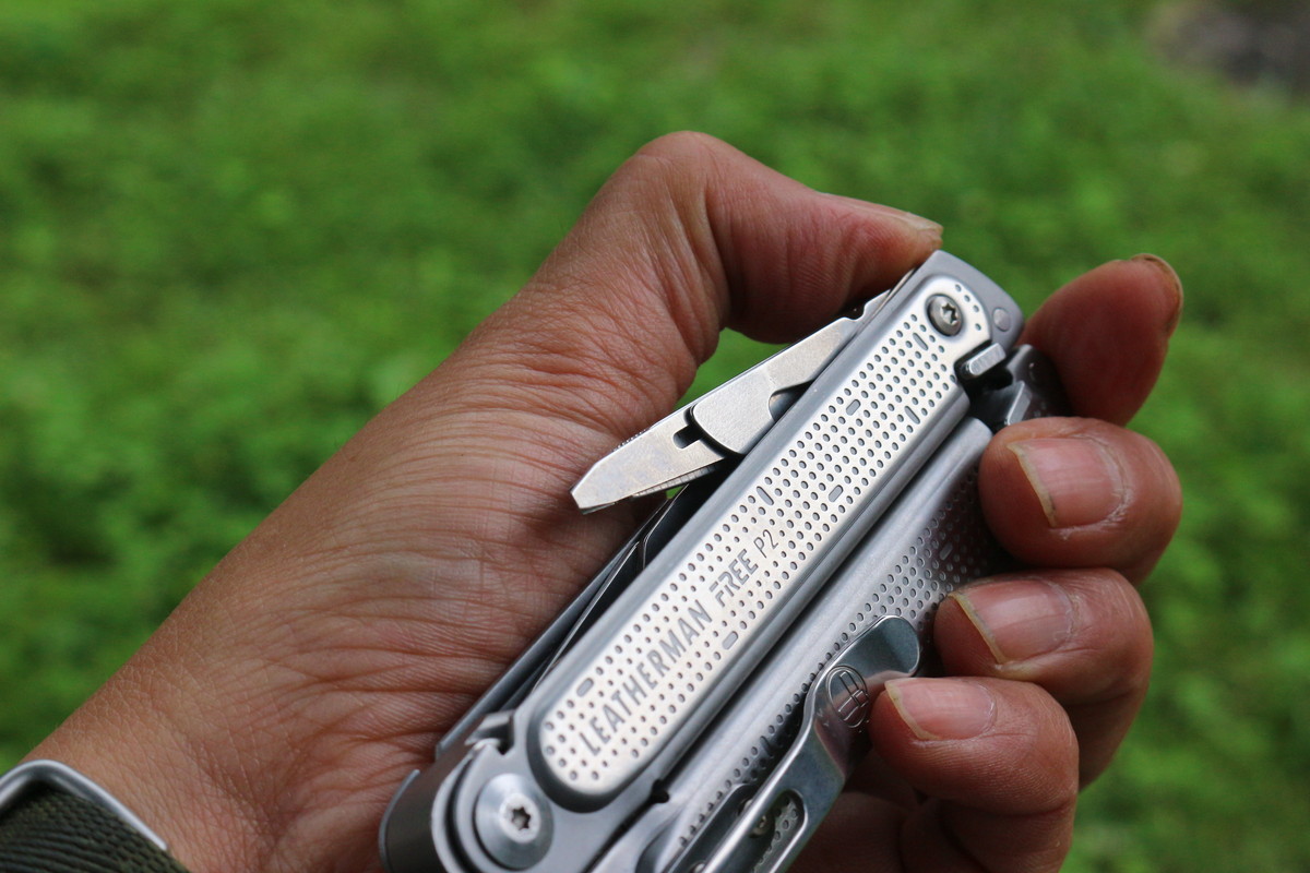 ナイフとプライヤー以外は、全てをたたんだ状態でハンドルの端の突起を押し出すことでツールが出てきます。突起はわずか。そこを指先で押すわけですが、爪でなんとかしようと思ってもうまくできません。