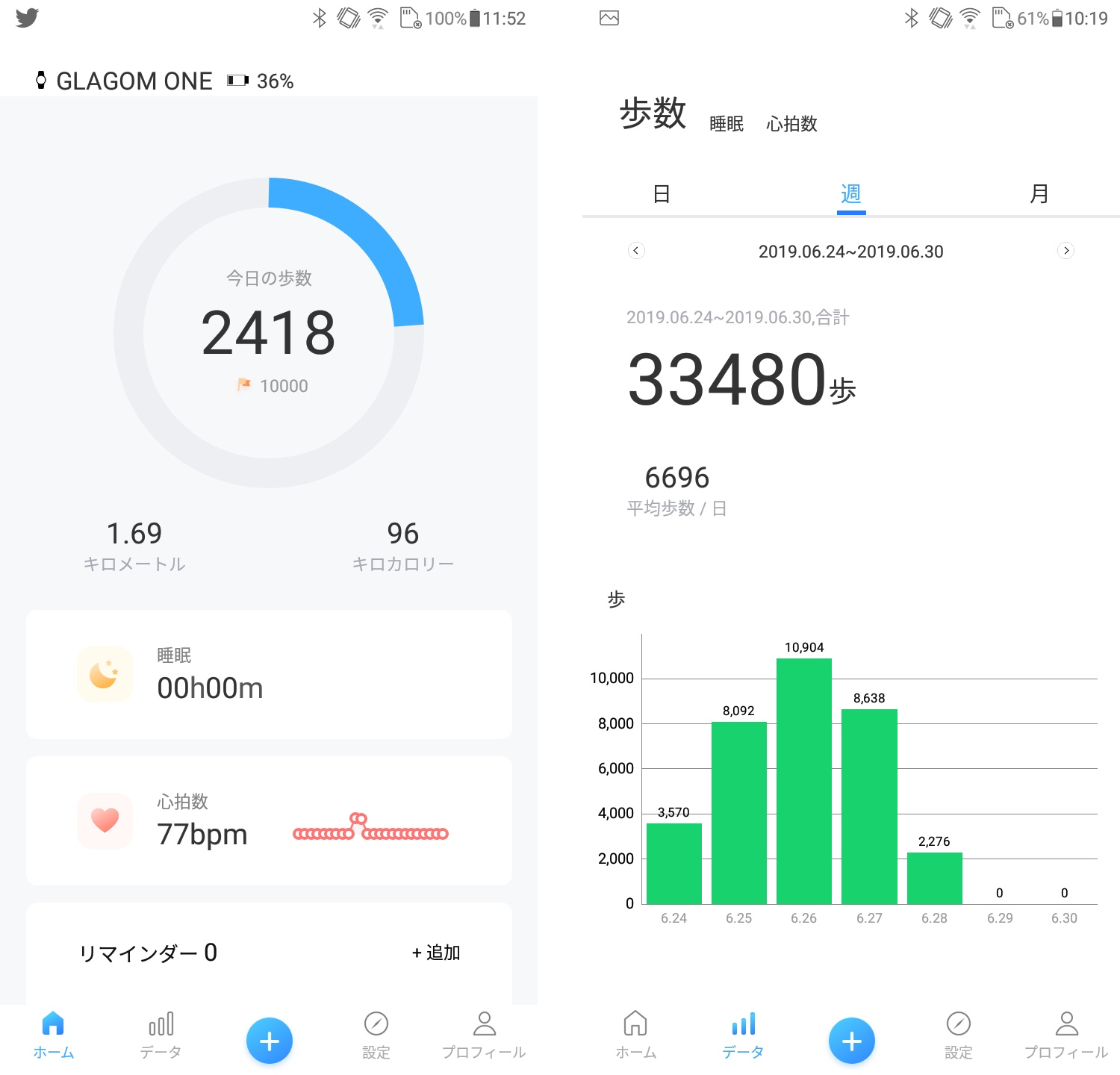 ミニマムと言いつつ、その他にも心拍数が測れたり、睡眠状況がモニタリングできたりする。これらの計測も、他のスマートウォッチで経験済み。できれば、GLAGOM ONEには、心拍計測や睡眠状況をモニタリングする意義を、高めてくれるようなアプリにしてほしかった。
