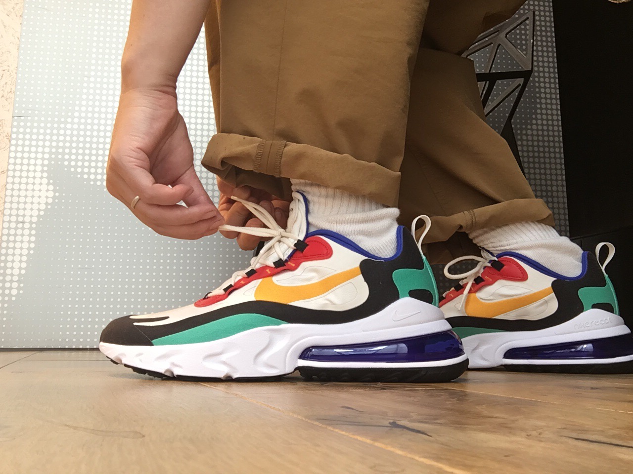ナイキの最新2大テクノロジーを2つとも搭載してしまうとは! 最新アッパー生地×最新ソールの組み合わせは当たり前ですが、このモデルの場合は最新ソール同士の組み合わせですからね! ナイキのこのシューズに掛ける熱い思いが垣間見えます。実際に履いて歩いてみると、フカフカのクッショニングと足を前へ押出してくれる推進力を実感できますよ(※ワタクシの主観です)。皆さんも実際に履いてお試しする事をおススメします! ちなみにですよ、そのうち“エア ウェイパー マックス リアクト”とか出てきても不思議じゃないでよね。