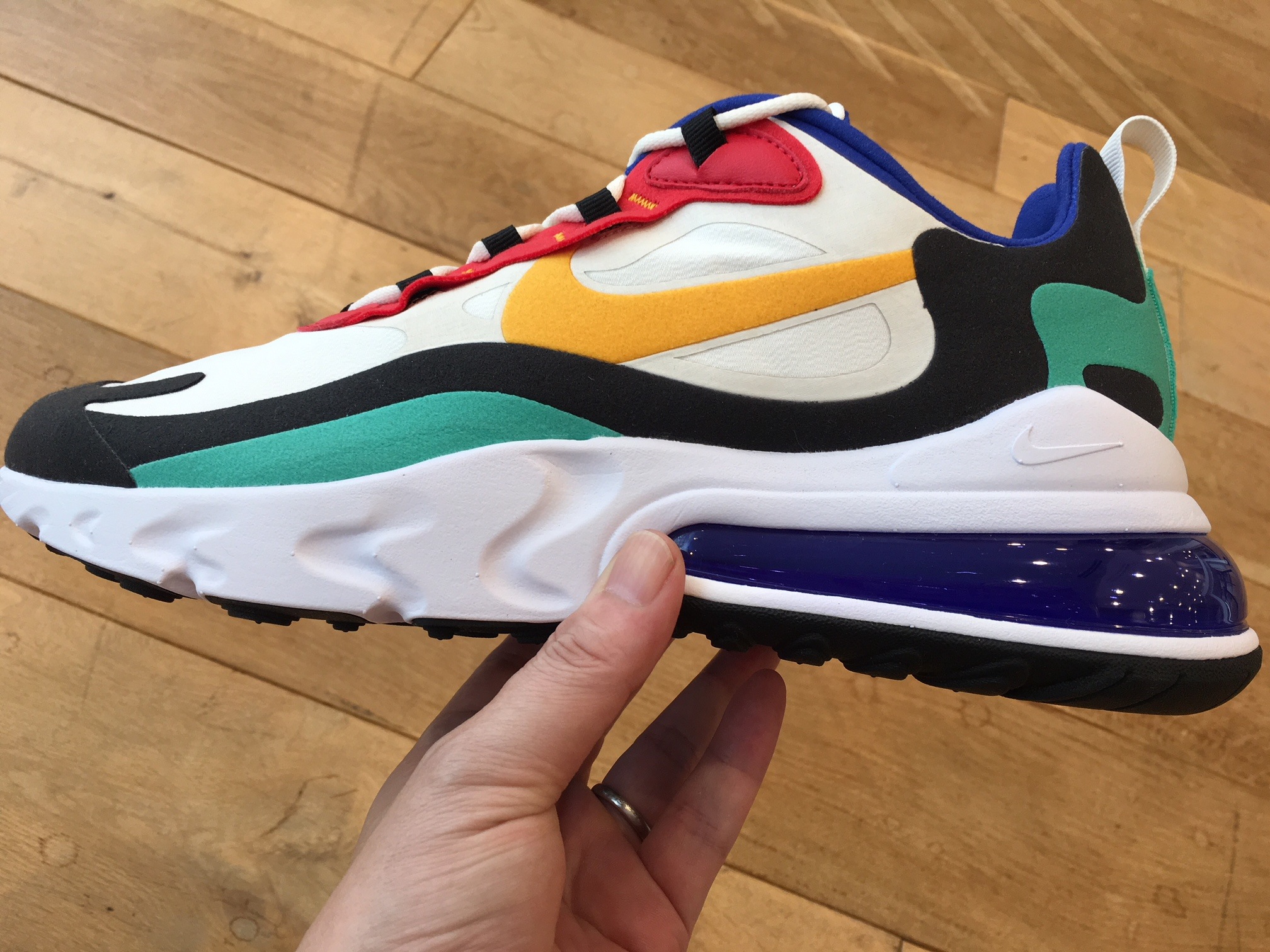 アウトソールは先進のリアクトを採用。そして肝となるのがミッドソール! 前足部はリアクト、そして後足部は270Max Airユニットを搭載。優れた反発力と滑らかなクッショニングを両立させています。