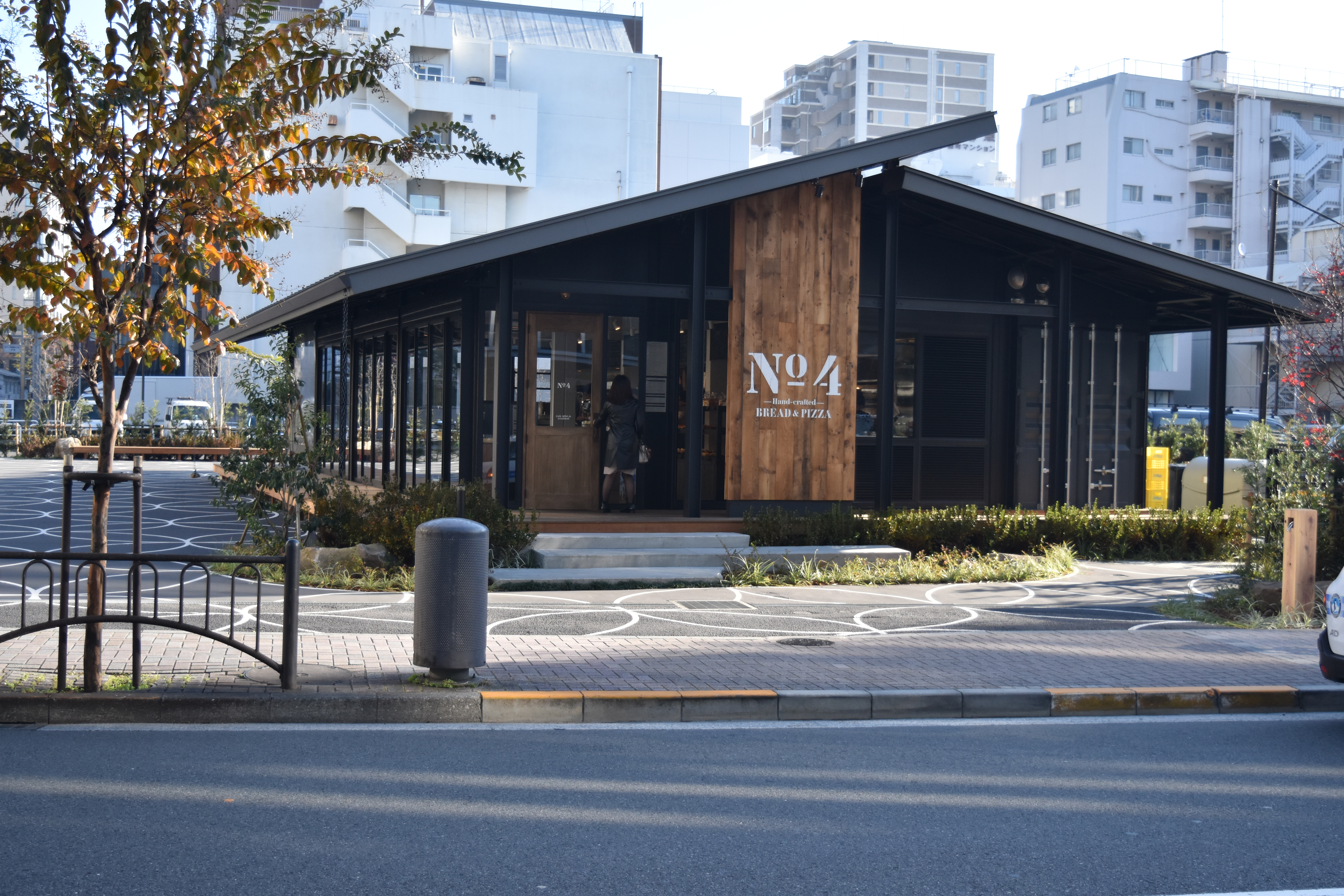 「No.4」の外装。木とスチールを組み合わせた内装は倉庫街のコンテナを思わせる面立ち。千代田区では当然ながら新しい表情を生み出す存在だ