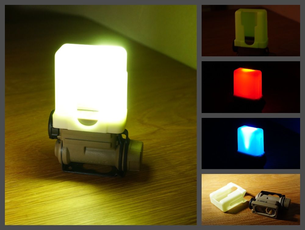 さらにこのサイドワインダーシリーズには、ユニークなアクセサリーが別売されています。その1つがこのセーフティワンド。蓄光素材で作られたワンド(拡散用カバー)で、ランタンのようにして使える他、マーカーとしても優秀です。使い方は簡単、ただライトユニットの前面にはめるだけ。