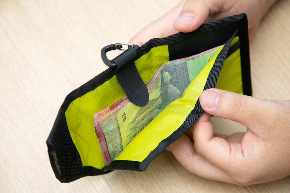 海外旅行時に最も気になるのは、おそらく防犯対策ではないでしょうか。この「TRAIL BANK - M」を見つけた時も、この点がネックで悩みました。そもそも登山者などに向けたアウトドア財布なので、防犯対策は考えられていません。