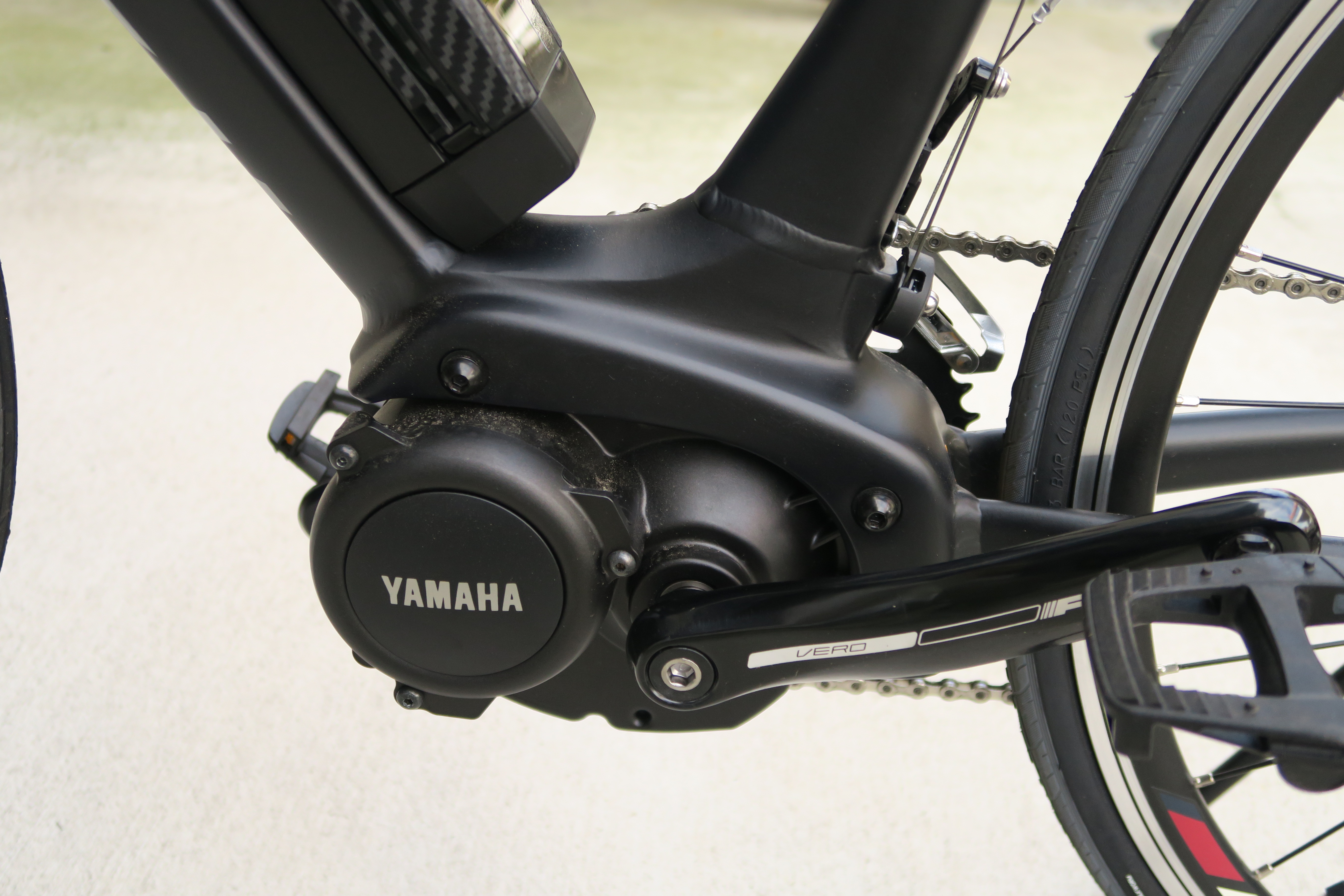 通常の電動アシスト自転車はチェーンがドライブユニット内を通っており、このため、電源をオフにすると通常の自転車と異なり、非常に重くなる。しかし、「YPJ-R」では通常のロードバイクと同様のクランクを採用。そこにアシストが加わる仕組みのため、電源オフでも負荷がからなくなっている。