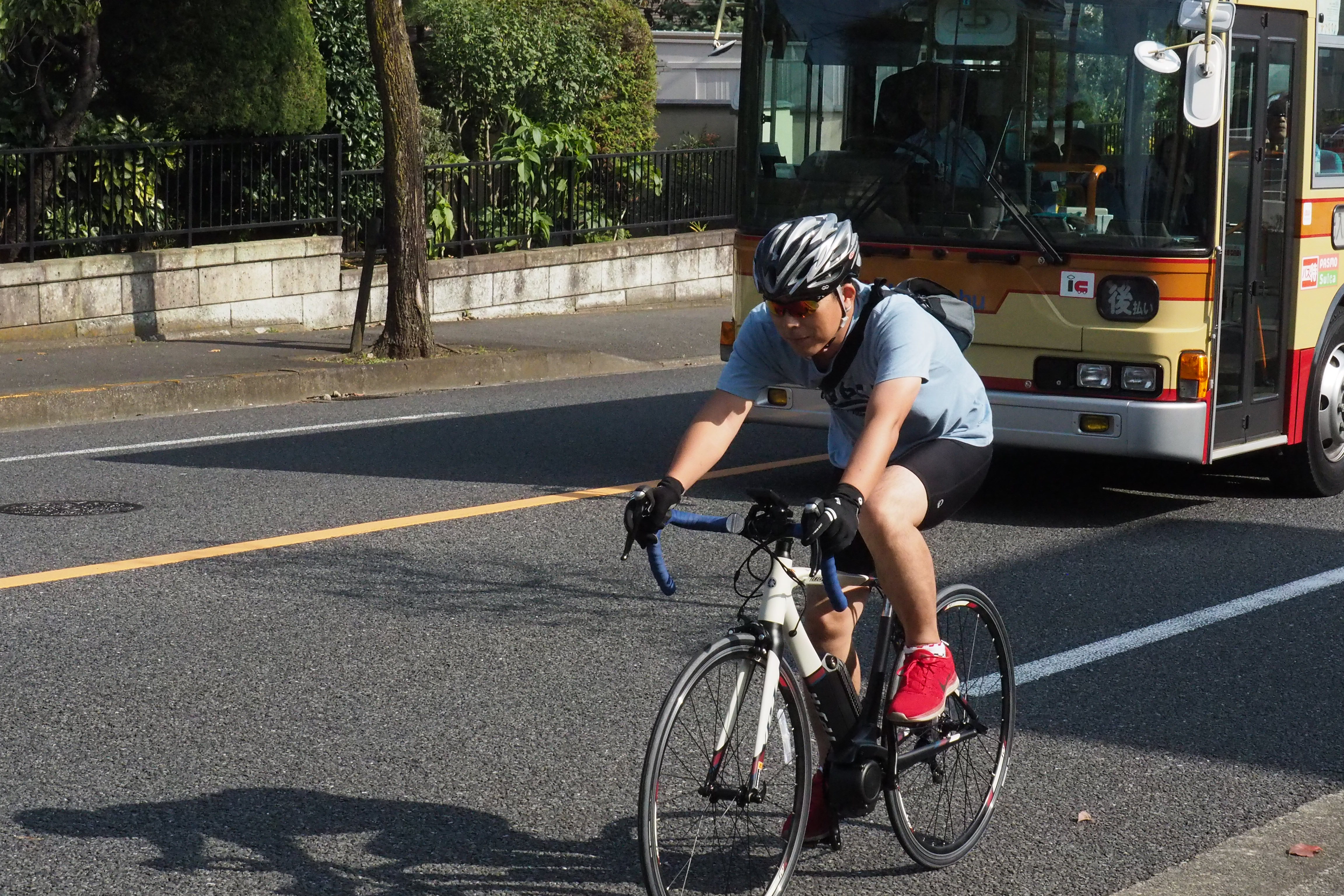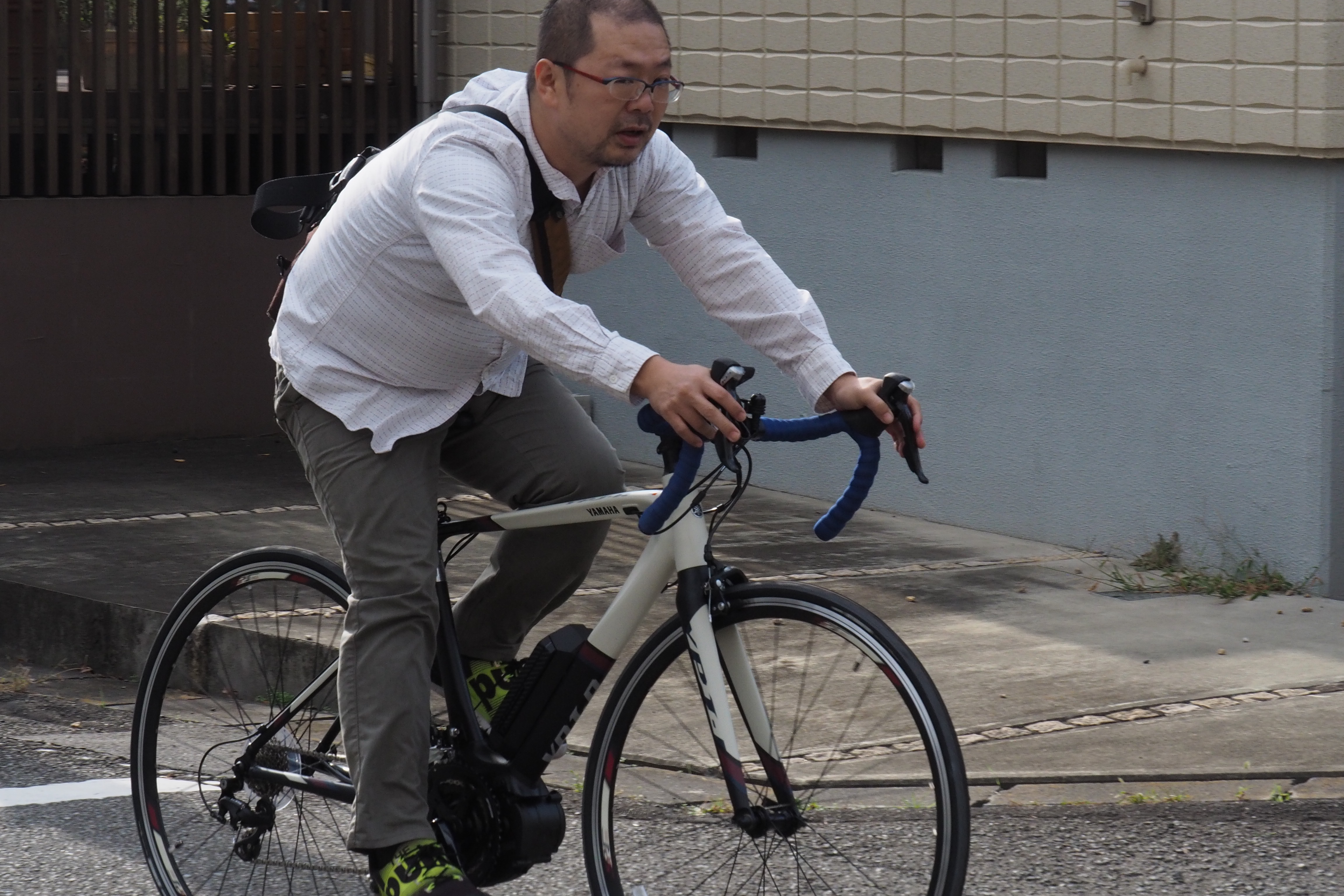 横浜から東京郊外まで「YSJ-R」に乗るため自転車で走ってきてくれたS氏。電動ロードの実力をチェックするため、アップダウンの激しい多摩丘陵地帯を走り回ってくれた