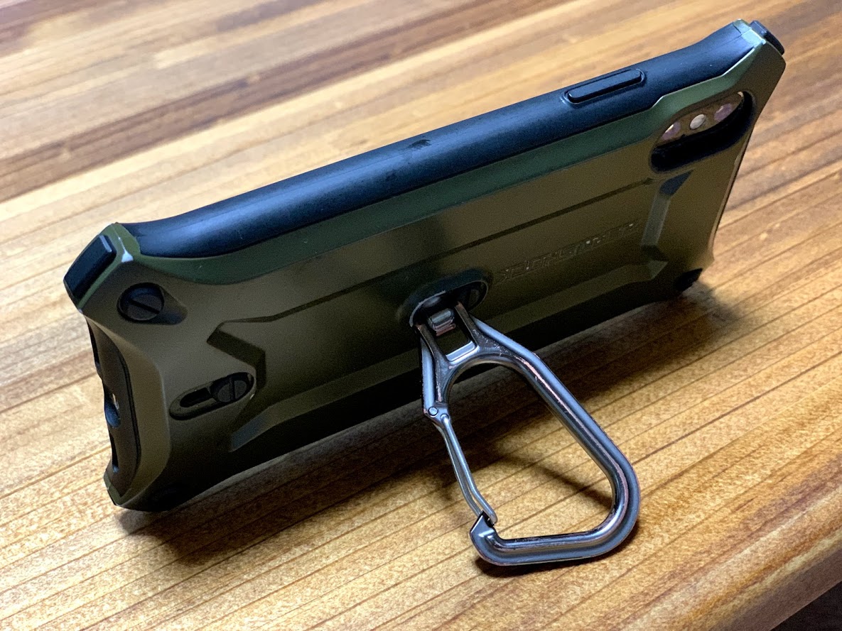 機能性に関しては、そこまで珍しいわけではないiPhoneケースですが、とにかくカラビナ部分の耐久性が素晴らしいと感じました。さすがアウトドアでの使用を想定したつくりというか、ヒンジ部分がバカになってぶらぶらしてくると、「ああ、もうこいつお払い箱だな」感が出てくるじゃないですか。