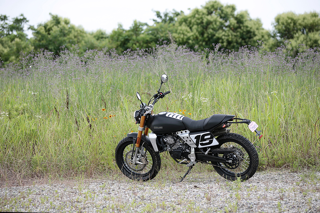 そんなスクランブラー人気絶頂の中、イタリアから注目のモデルが上陸しました。ファンティック「キャバレロ スクランブラー」がそれ。ファンティックは、1968年に設立された、半世紀の歴史を持つバイクメーカー。同社初のオリジナルモデルが「キャバレロ クロス50」というスクランブラーですから、ある意味、生粋のスクランブラーメーカーです。