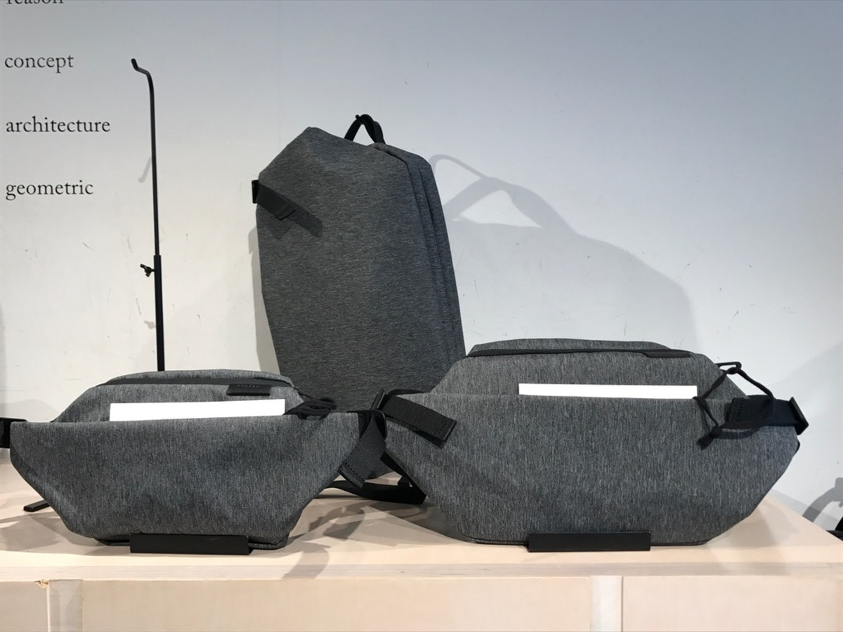 ミニショルダーバッグ「ISARAU」は、2サイズをラインナップ。もともと写真右の大きい「ISARAU」が展開されていましたが、日本のユーザーの要望などから、左のひと回り小さい「ISARAU SMALL」が日本限定で登場しました。大きいほうはiPad Airが収まるサイズ設計で、荷物が少ない人なら仕事にも使えそうです。