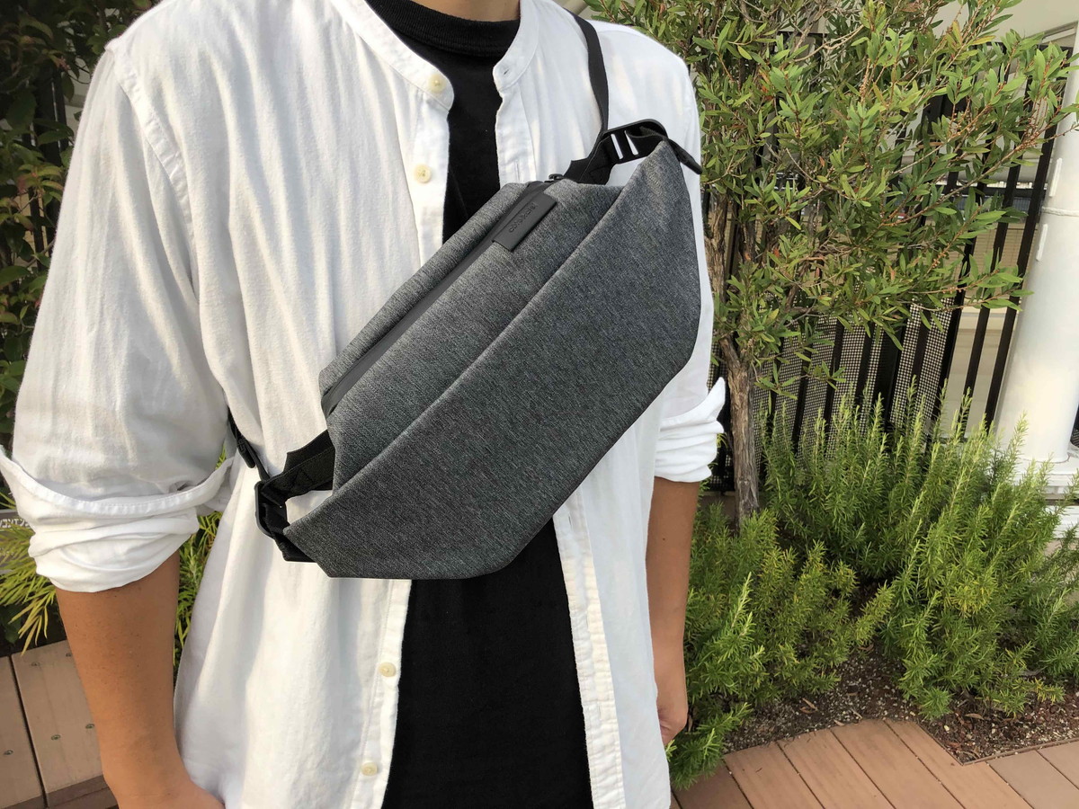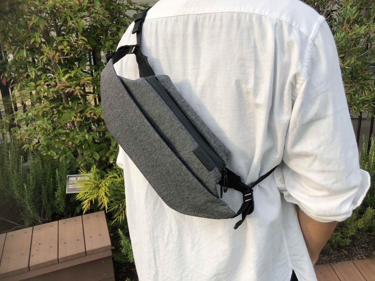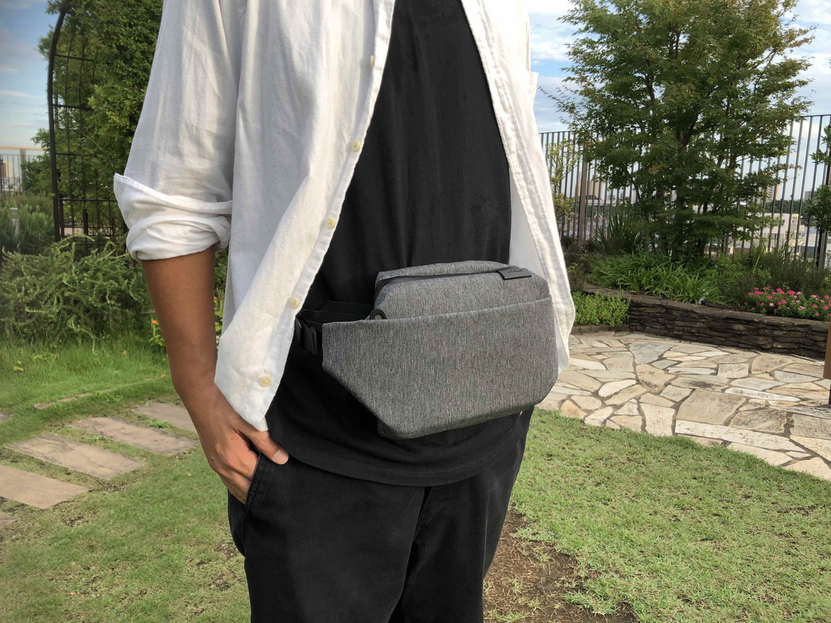 荷物の取り出しやすさで選ぶなら、腰に巻くのがベスト。あまり今っぽいスタイルではありませんが、この「ISARAU」のように、バッグ自体が洗練されていたらアリな気がします。
