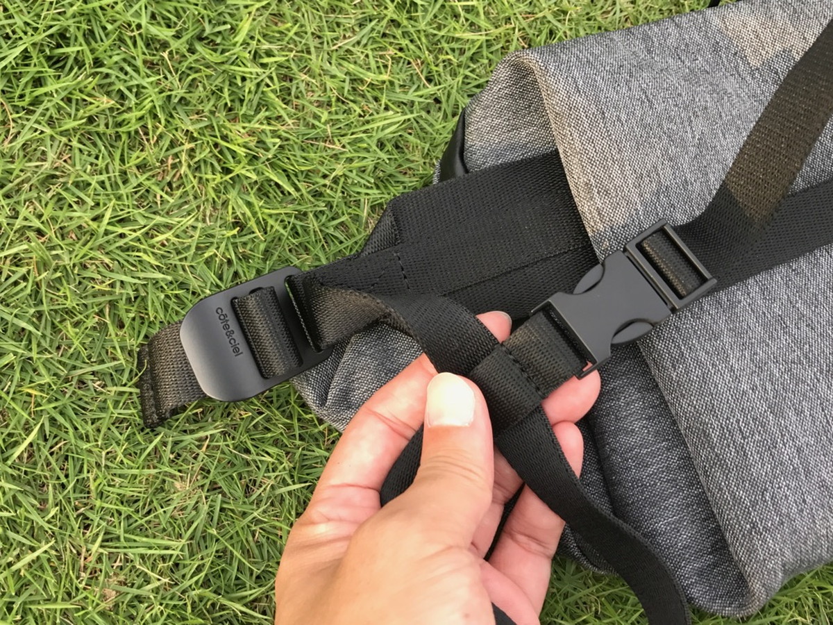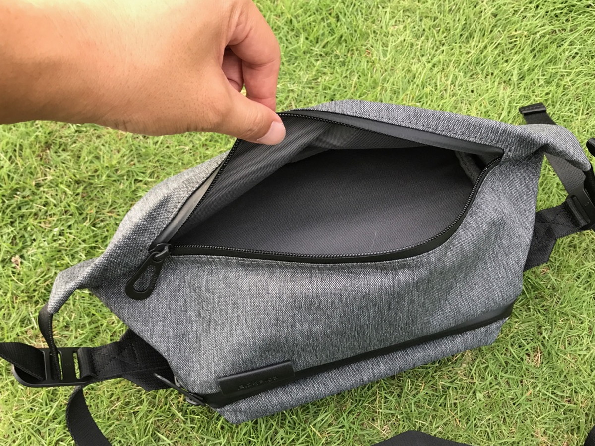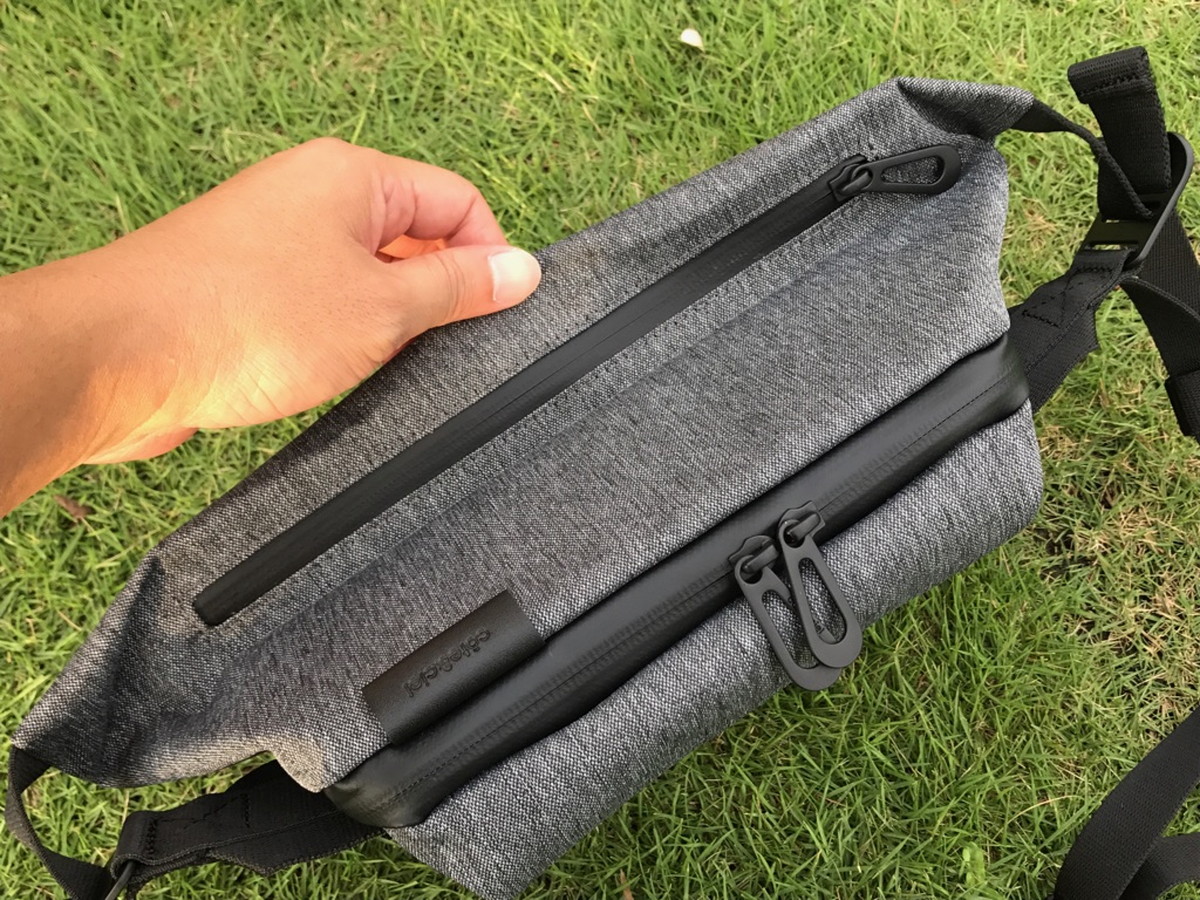 コンパートメントは2室あり、どちらも開口部に止水ファスナーを採用。素材のエコヤーンは撥水性に優れているので、多少の雨であれば荷物が濡れる心配もなさそう。これは嬉しい仕様。