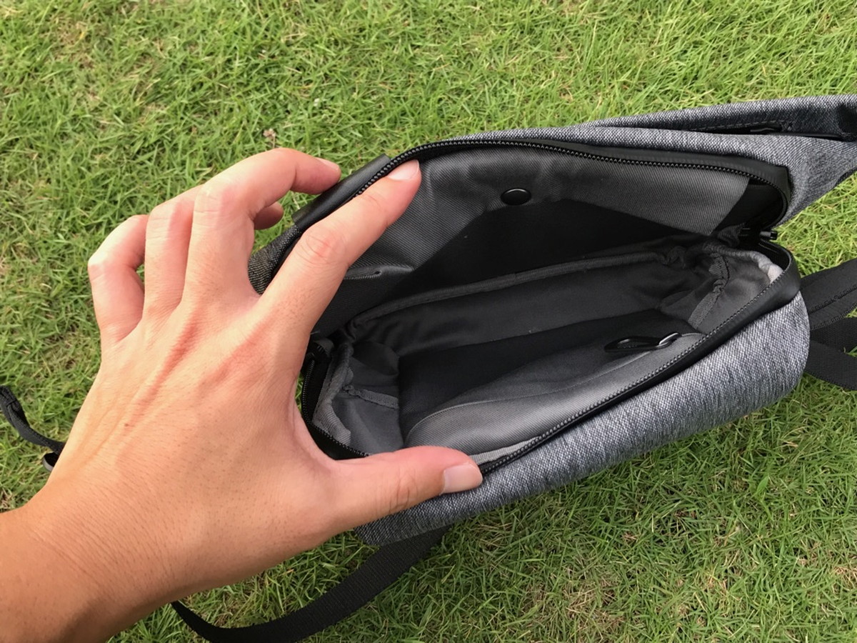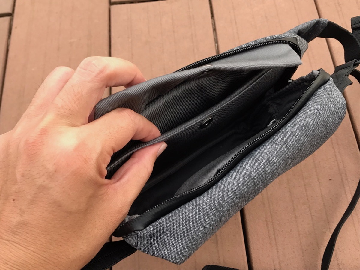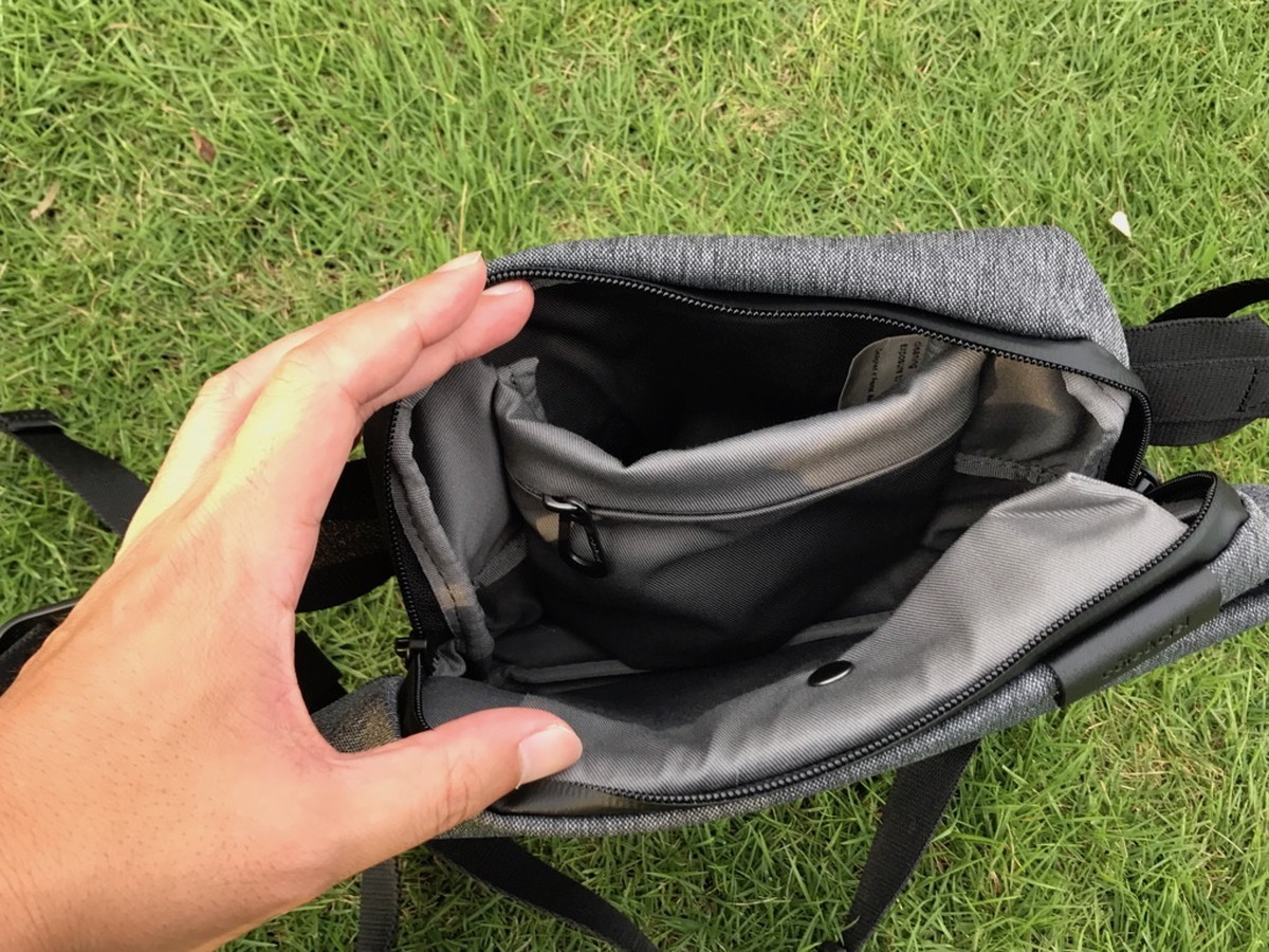 そして体に近いほうのコンパートメントには、ポケットや仕切りが付いていて、小物を整理して収納可能。
