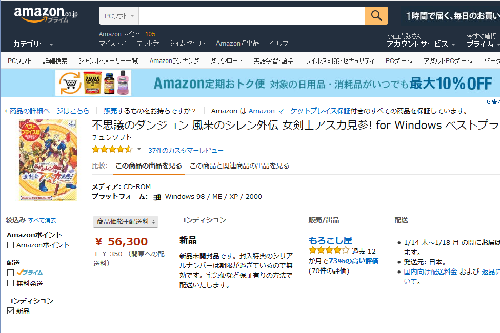 1月上旬時点での新品パッケージ価格。中古は3万円台半ばだった