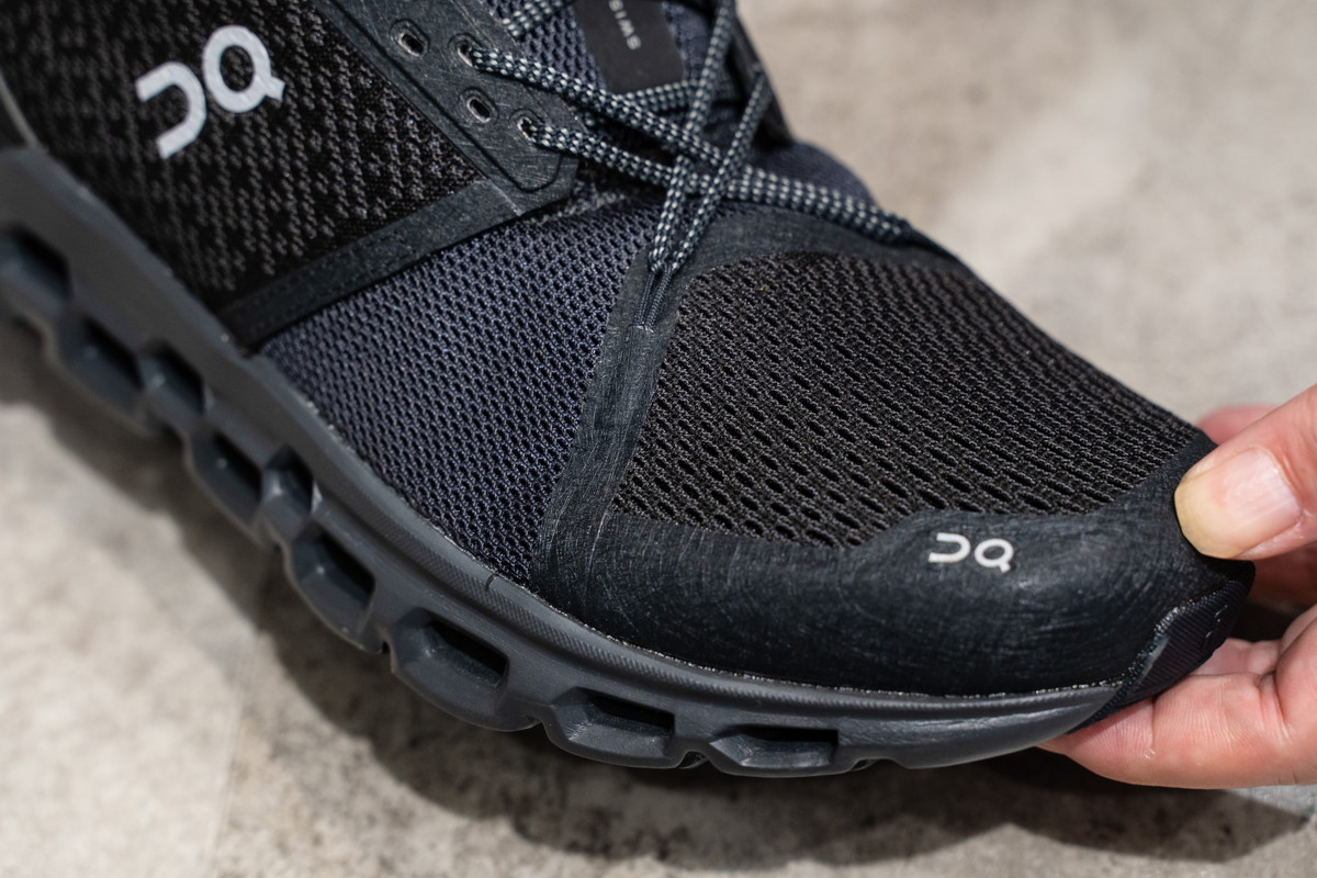 アッパーは伸縮性を持たせたナイロンメッシュで通気性はバツグン。さらに足の動きを計算して非対称に作られていて、動作を邪魔することなく通気性の良さを最大限に引き出しています。