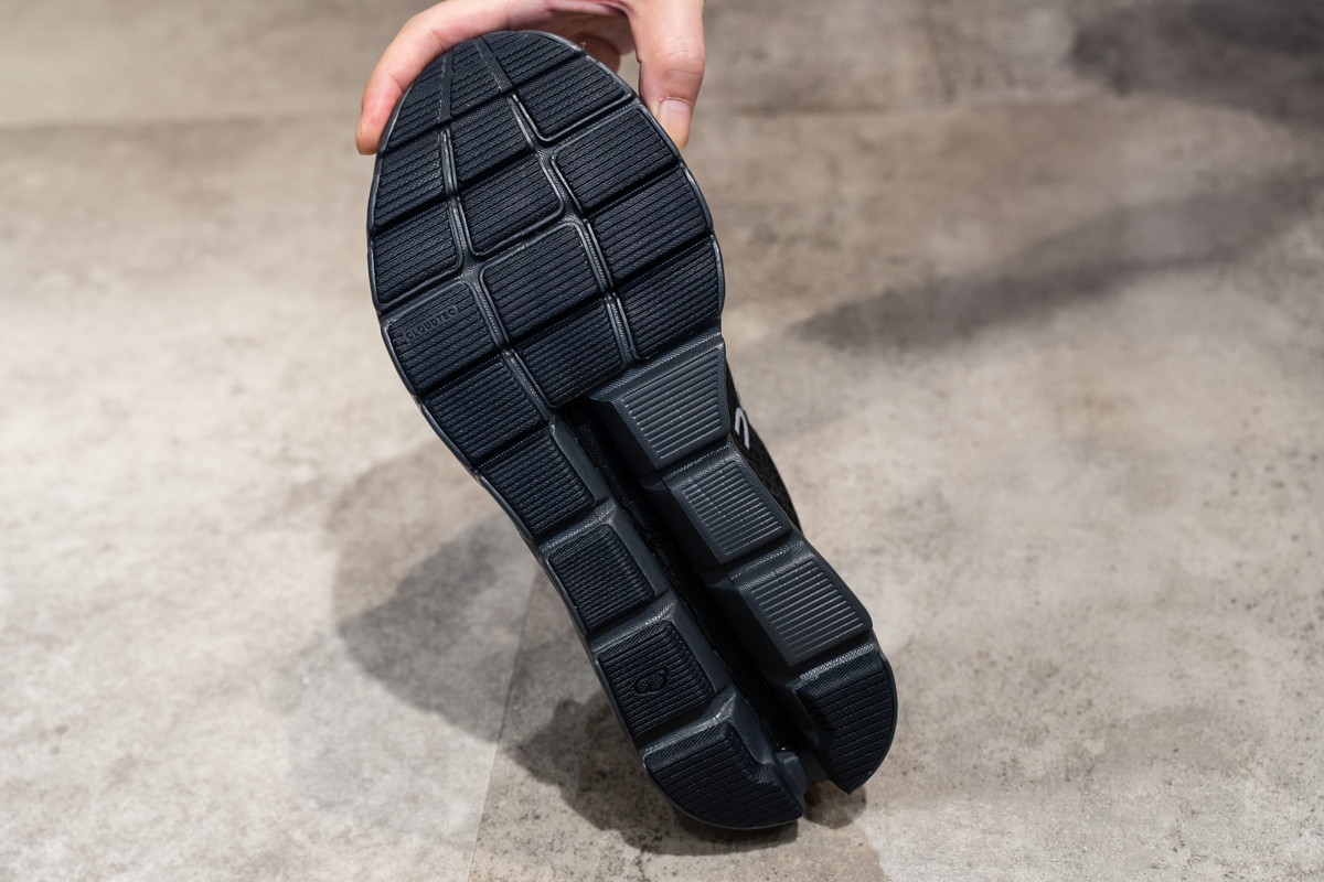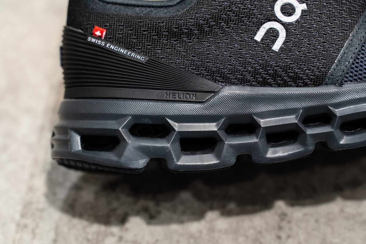 六角形のフレームが連なるように形成されたミッドソール。これこそが、オンが誇るテクノロジー“CloudTec”。垂直方向と水平方向のクッショニングを高めています。さらに“Helion”を重ねることで、スムースな蹴り出しもサポートしています。