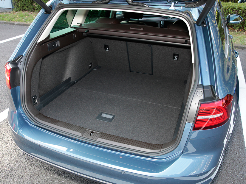 で、気になる荷室も見てみましょう。容量は650リッター。「ゴルフ ヴァリアント」のそれを45リッター上回ります。実寸したところ、最大幅は142cm、奥行き110cm、パーセルシェルフ(荷室カバー)までの高さは48cm。幅と奥行きでゴルフ ヴァリアントをしのぎます。