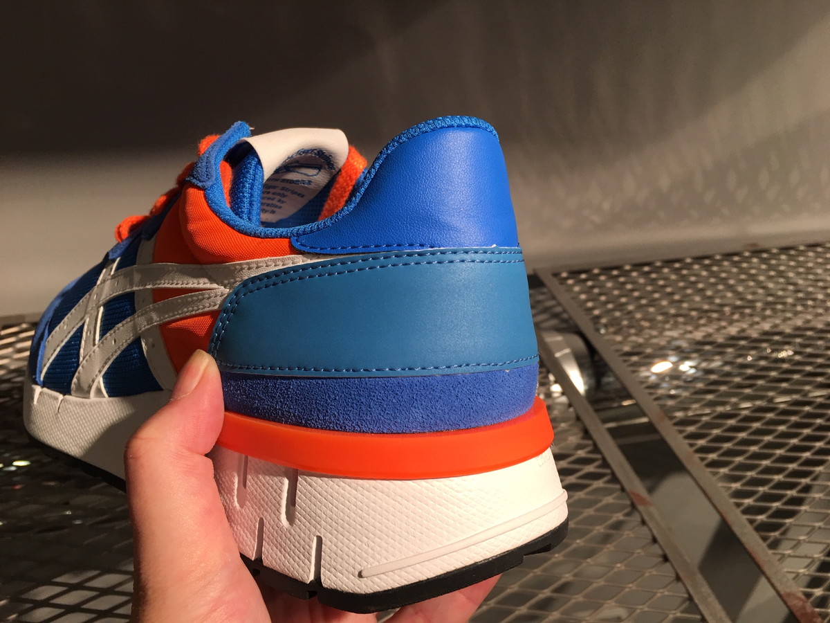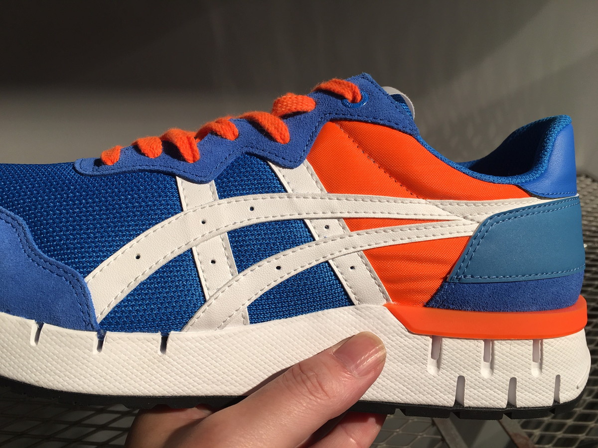 おなじみのオニツカタイガーストライプにはベンチレーションホールを配して通気性を高めるだけでなく、アクセントにも効いています。