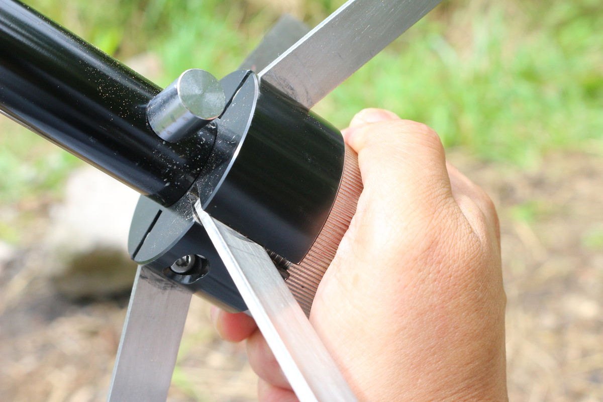 高さは24cmですので、ローチェアとの相性がいいですね。ただ、火床の中心部がたるむので、中心部の高さは20cmほどになってしまいます。長時間、たき火をしていると草地に影響が出そう。オプションの「ANTI SPARK RUG」(2000円/税別)など耐熱シートがあると安心です。
