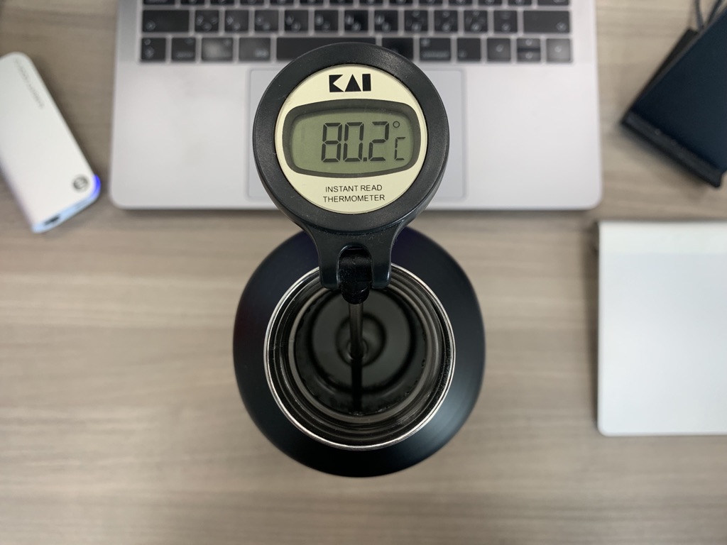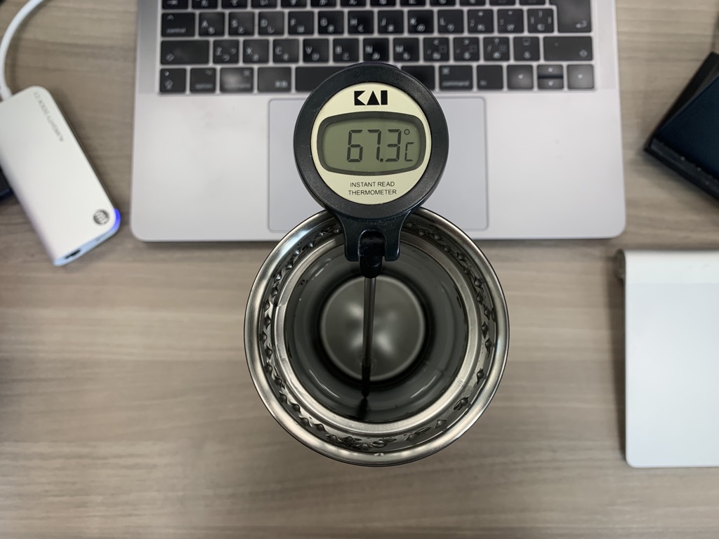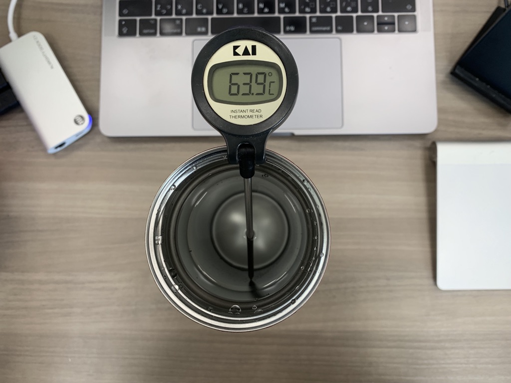 ▲12:30で63.9℃。8時間後の15:30では54.4℃。必要にして十分な保温機能