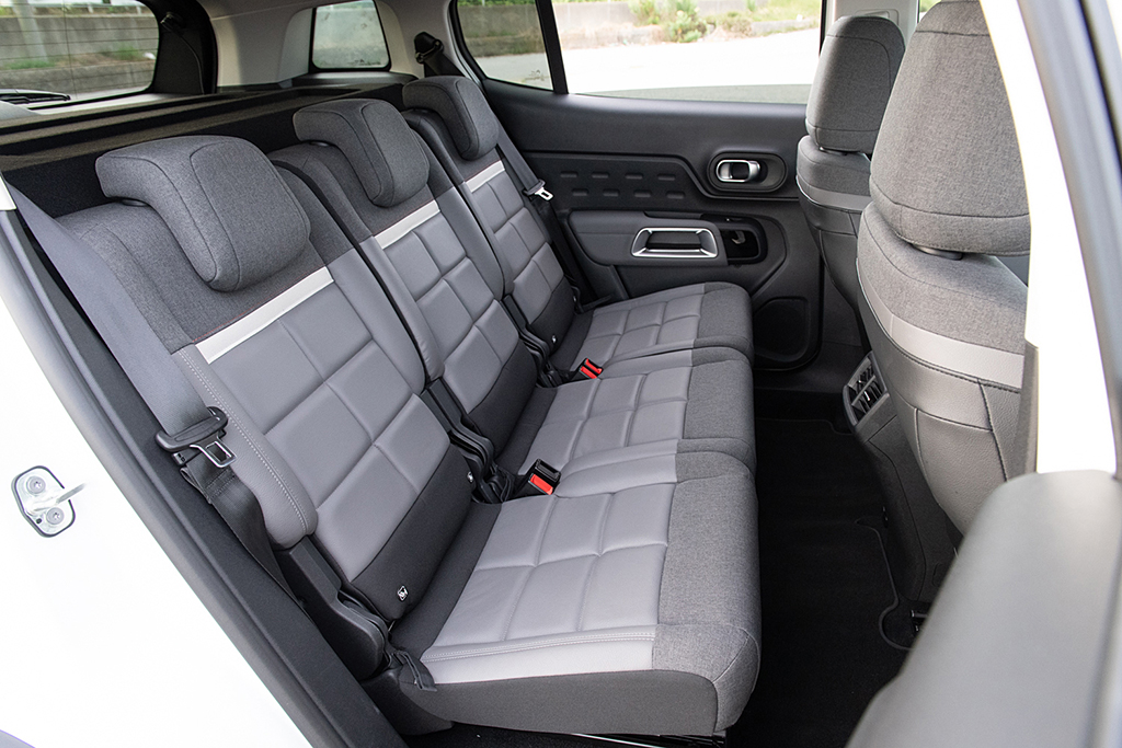 まず、C5エアクロスSUVのドアを開け、たっぷりとしたシートに腰を下ろした瞬間、その快適さの一端をまず感じることができました。シートの感触はしっとりとしたもの。ソフトというとコシのない感触を想像しがちですが、表面に近い部分は柔らかく、カラダが沈むに従ってしっかりとしたコシを感じる、というタイプ。シートをまとう…、というといいすぎですが、姿勢が崩れないようカラダの要所を支えながらもフィットする感覚は、往年のシトロエンを知る人はもちろん、シトロエンは初めてという人も納得、といった出来ばえだと思います。