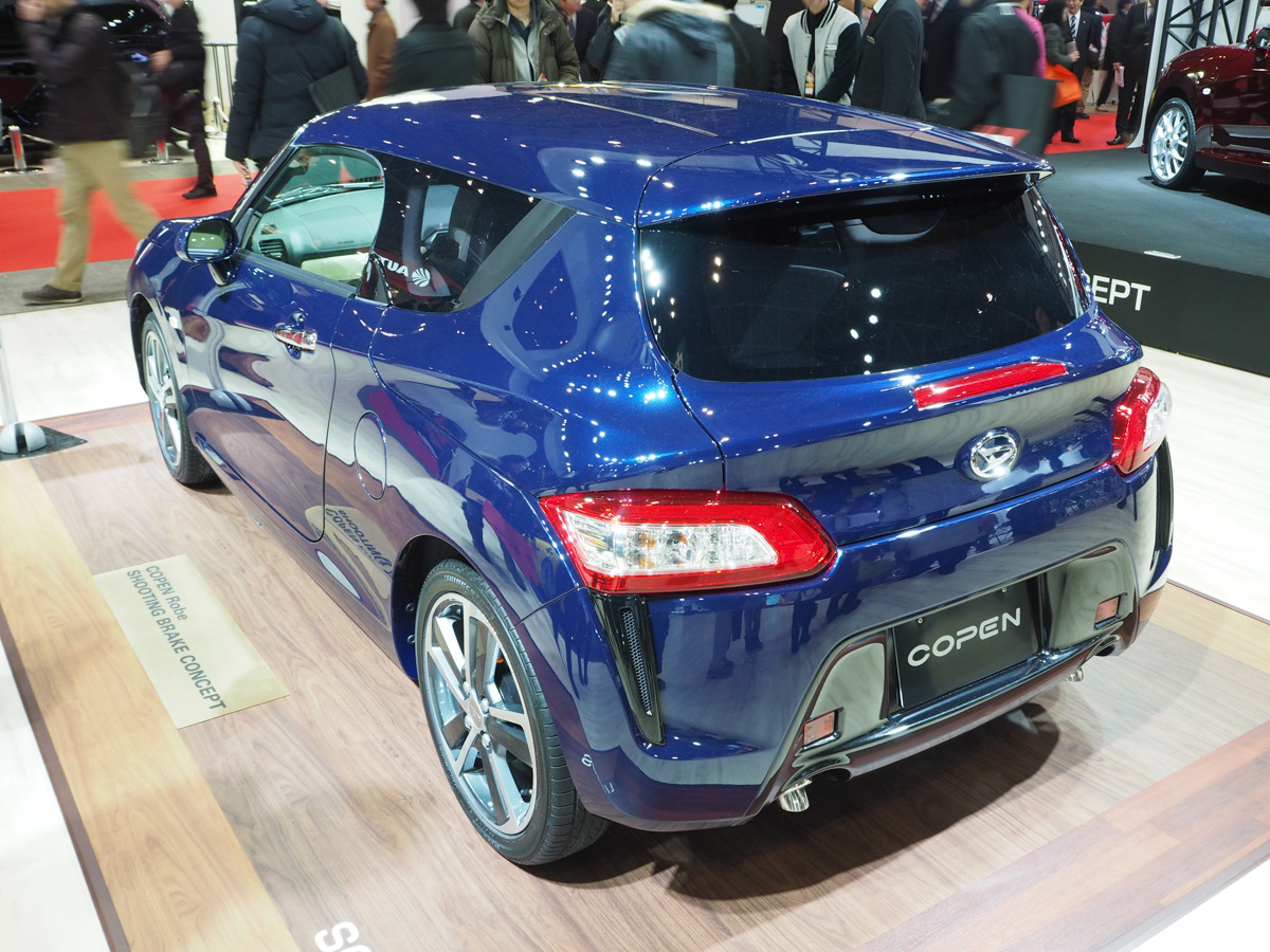 その隣に置かれていた「コペン ローブ シューティングブレーク コンセプト」は、さらに衝撃的。コペンにラゲッジスペースという“機能”をも追加してしまおうというもの。シューティングブレークといえば、近年ではフェラーリ「FF」が好例ですが、街中で見ても異形のスポーツカーとして「ハッ!」とさせられる存在感があります。そんな流れをくみながら、実用性をプラスしつつスタイリッシュに仕上げた点も、コペンらしさ全開!