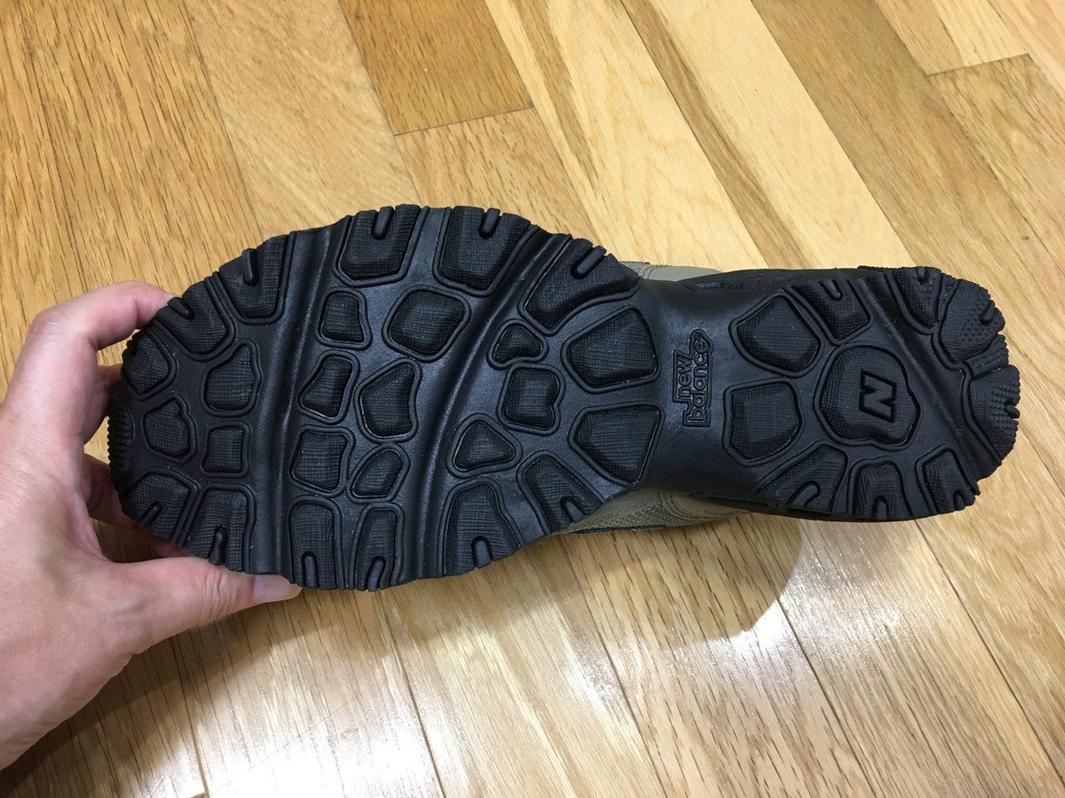 アウトソールには凹凸の深いラグソールを採用し、荒れ地でも高いグリップ力を発揮します。