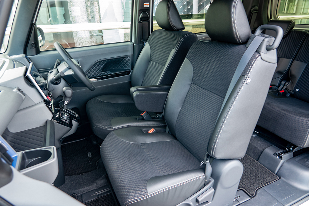 この場合、乗車時にはまず、子どもを後席に付けたチャイルドシートに座らせる。その後、普通のクルマでは、一度、車外に出て運転席側に回る必要があるが、運転席を後方へ大きくスライドさせることができる新型タントなら、車高の高さを生かし、車内を通り抜けて運転席へと移ることができるのだ。これは、降車時も同様で、狭い場所や雨の日などは、特にそのメリットを享受できるはずだ。